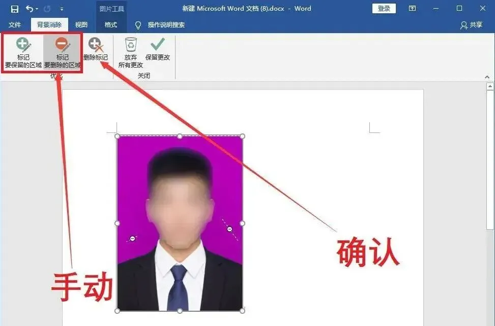 ③如果人物部位缺失,使用【标记要保留的区域】;有些背景无法自动删除,使用【标记要删除的区域】,最后点击【保留更改】。