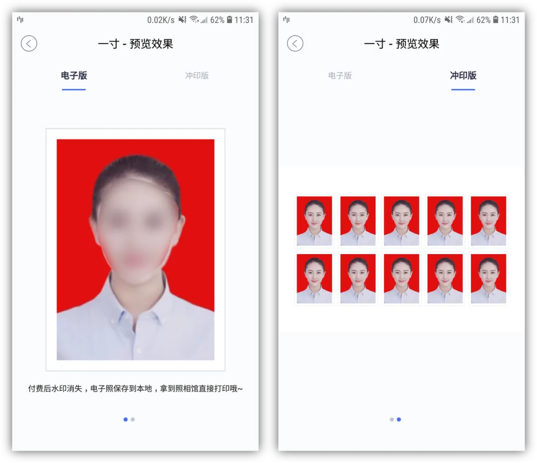 ③最后我们保存电子版和冲印版到手机相册,以后上传使用都很方便,如果需要纸质版照片,直接拿到照相馆打印,省时又省力。