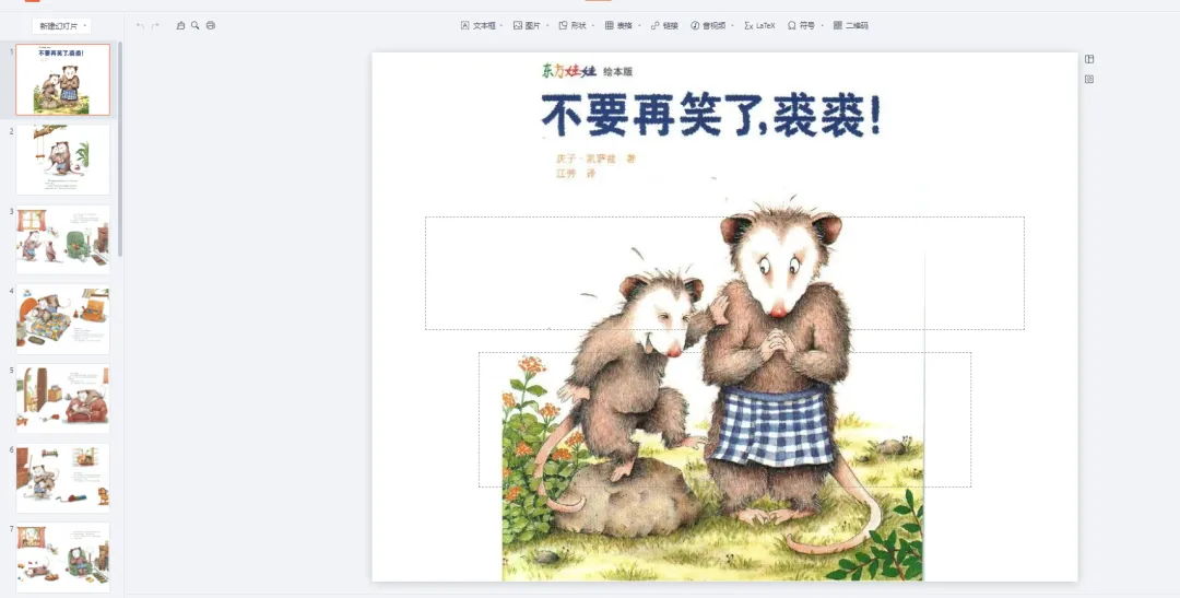 绘本阅读是幼儿教育的重要方式,但许多家长因孩子不识字或价格高而忽视其价值。实际上,绘本通过图文结合能同时刺激儿童的视觉和语言发展。优质绘本能提升儿童的认知、语言和社交能力。长期阅读对学业发展和亲子关系都有积极影响。绘本既是学习工具,也是亲子互动的桥梁。绘本PPT通过丰富多彩的故事和生动的画面,激发幼儿园儿童的学习兴趣,培养他们的阅读能力、想象力和创造力。 绘本PPT电子版画册涵盖了各种主题和风格,包括寓言故事、科普知识、生活常识、人际交往等方面,满足不同年龄段儿童的阅读需求。这些绘本不仅具有丰富的故事情节和精美的插图,还注重文字表达简洁易懂,适合幼儿园儿童阅读和理解。鼹鼠妈妈要教裘裘装死的本领,只有这样,遇到敌人时才能逃脱。可是裘裘总是忍不住笑出声。鼹鼠妈妈假扮成一只饥饿的狐狸、一只可恶的狼和一只可怕的野猫,可裘裘还是不停地笑。鼹鼠妈妈一点办法也没有:要是裘裘在森林里碰上了一只凶巴巴的大熊,那该怎么办呢?这时,裘裘听到一个最最吓人的声音——大熊来了!