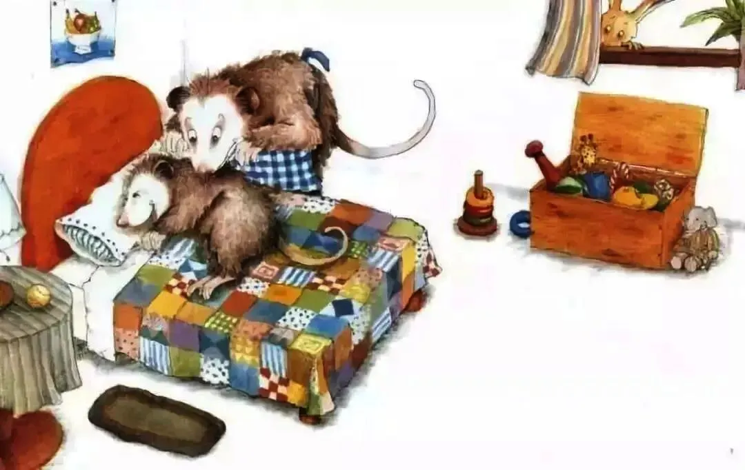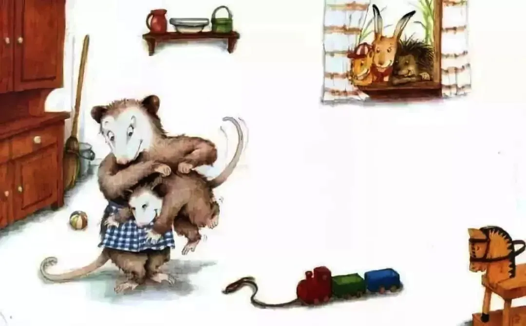 负鼠妈妈很疼爱她的宝宝裘裘,裘裘总是喜欢“咯咯咯”地笑。
