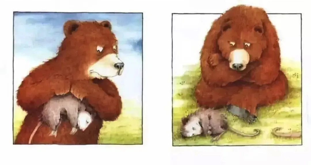 突然,大熊“哇”地一声大哭了起来。“真是太可怕了!”他哭着说,“为什么我总是凶巴巴的?原以为只有小负鼠裘裘才能让我笑起来,没想到我刚刚找到他,他就死了......好惨啊!”