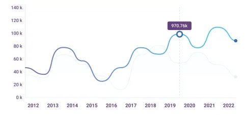 折线图清晰地反映事物随时间或有序类别而变化的趋势,面积图在折线图基础上而形成, 颜色填充后能更好的突出趋势信息。