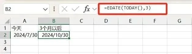 需求:今天(2024年7月30日)是项目启动日,想知道3个月后的同一天是哪天?技巧:使用TODAY()函数可动态获取当前日期,让公式结果随系统日期自动更新。场景2:回溯过去特定日期