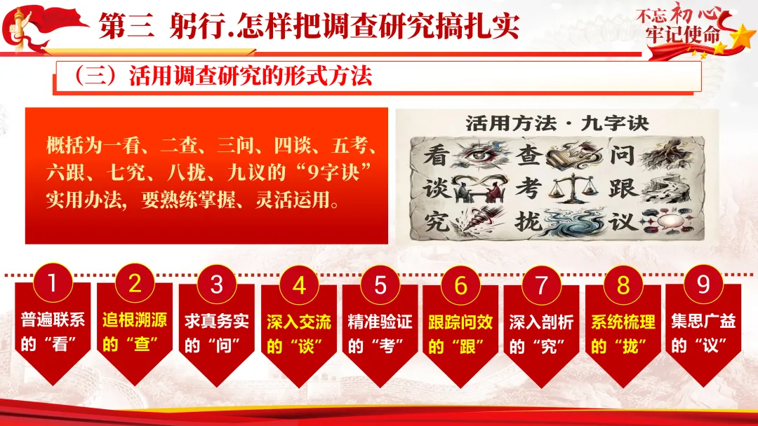 拒绝形式主义调研,掌握 “九字诀” 实用方法,让调研真正成为联系群众的桥梁、推动工作的引擎。**干部快收藏学习,把调研成果转化为干事创业的实效,在新征程上展现新担当!