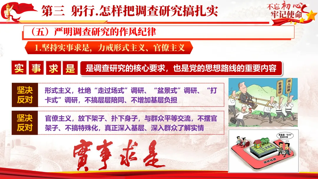 坚持实事求是,力戒形式主义、官僚主义