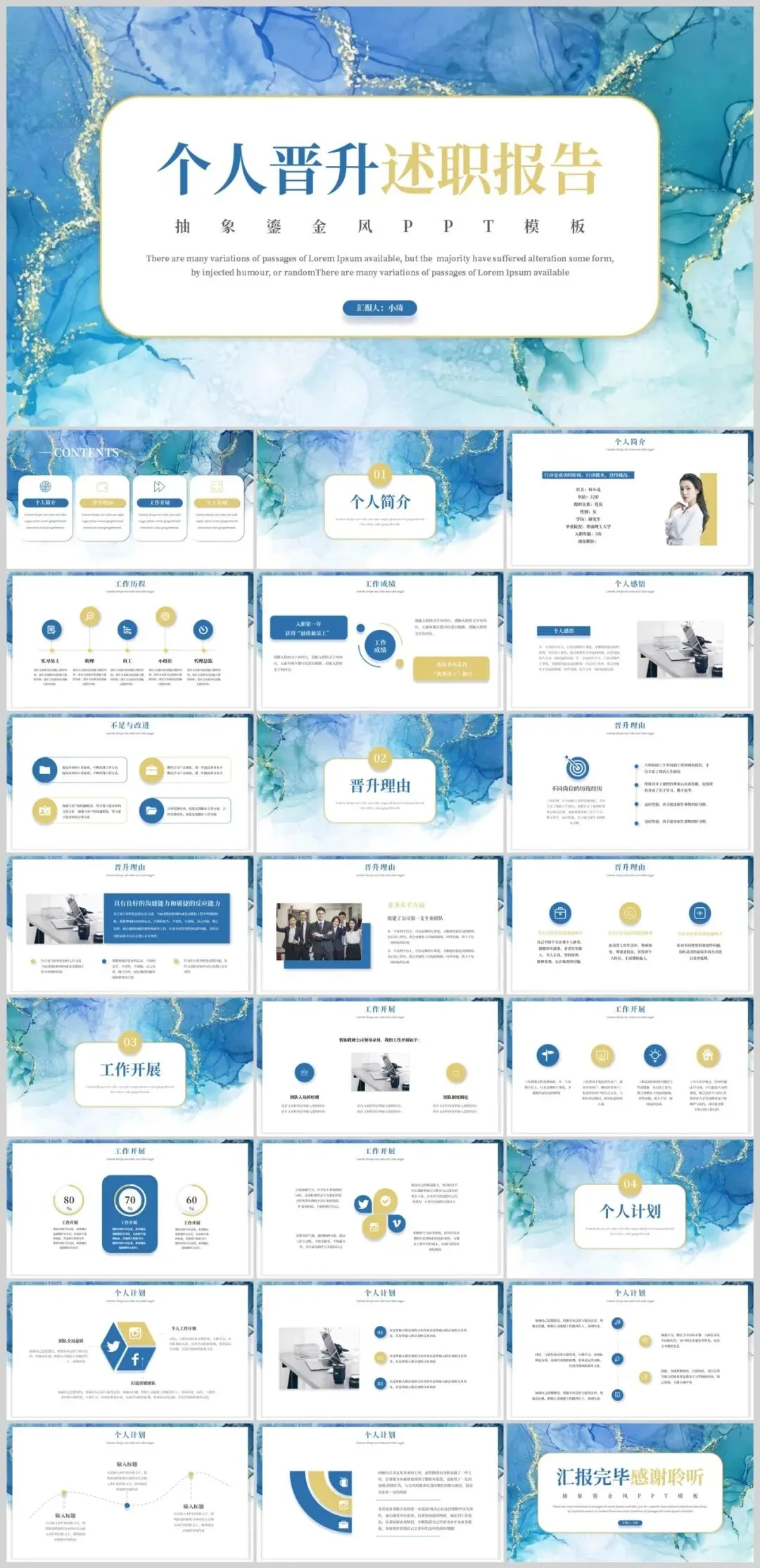 它并非简单的堆砌元素,而是通过对金色线条、渐变光影与高级留白的精准把控,让每一页都散发出不俗的格调。