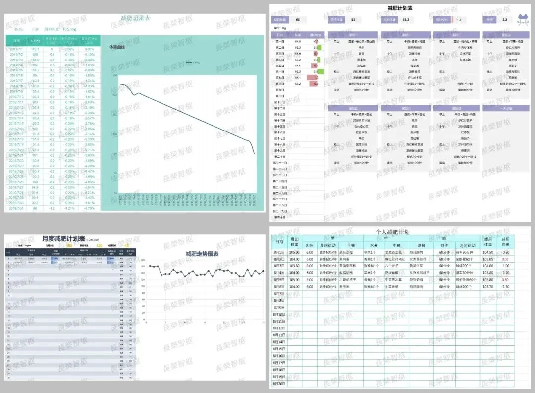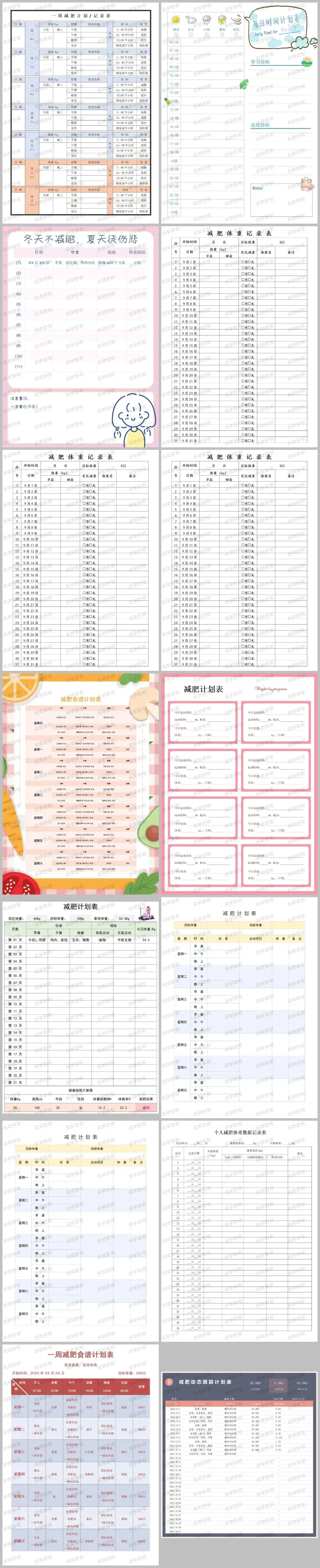 >【Excel word模板】减肥计划表17份 减肥饮食打卡记录计划表 体重数据记录表 健康指数计算器 减肥动态跟踪计划表 减肥食谱计划表