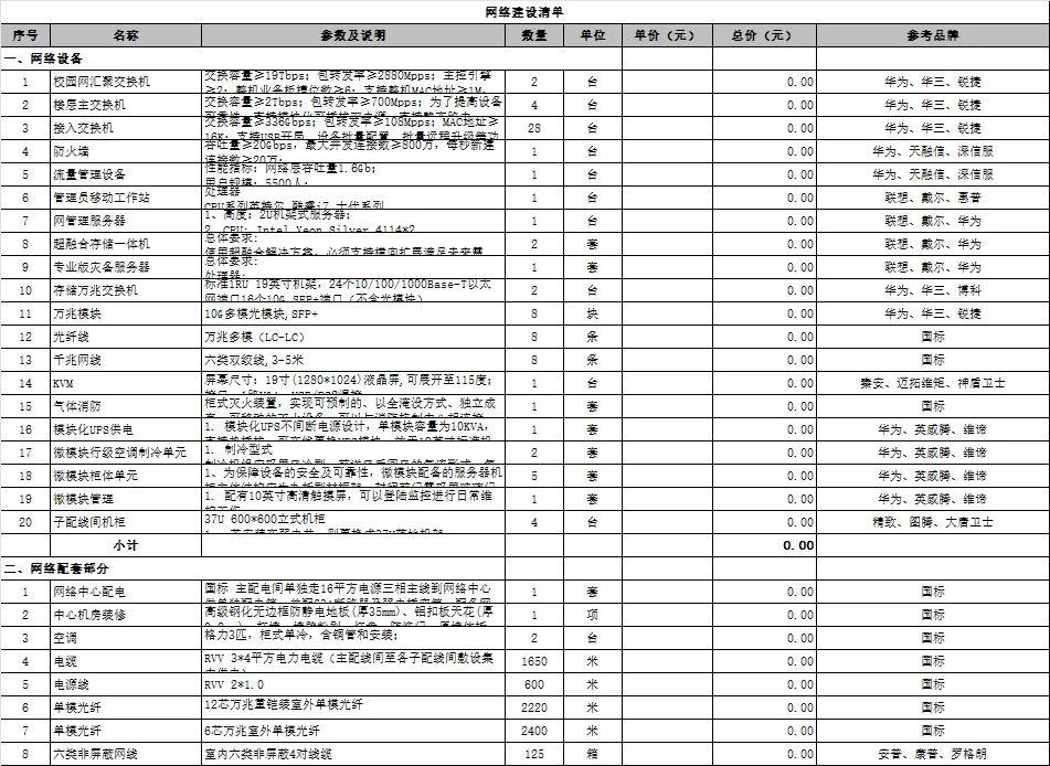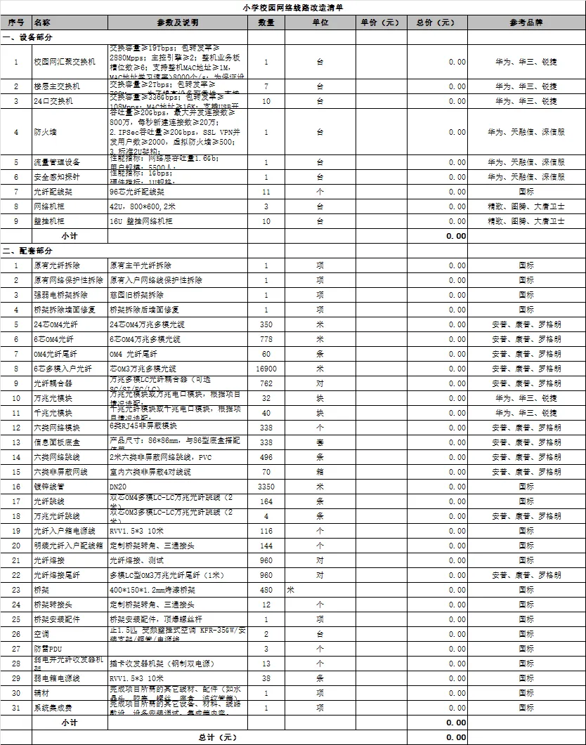 小学校园网络线路改造清单