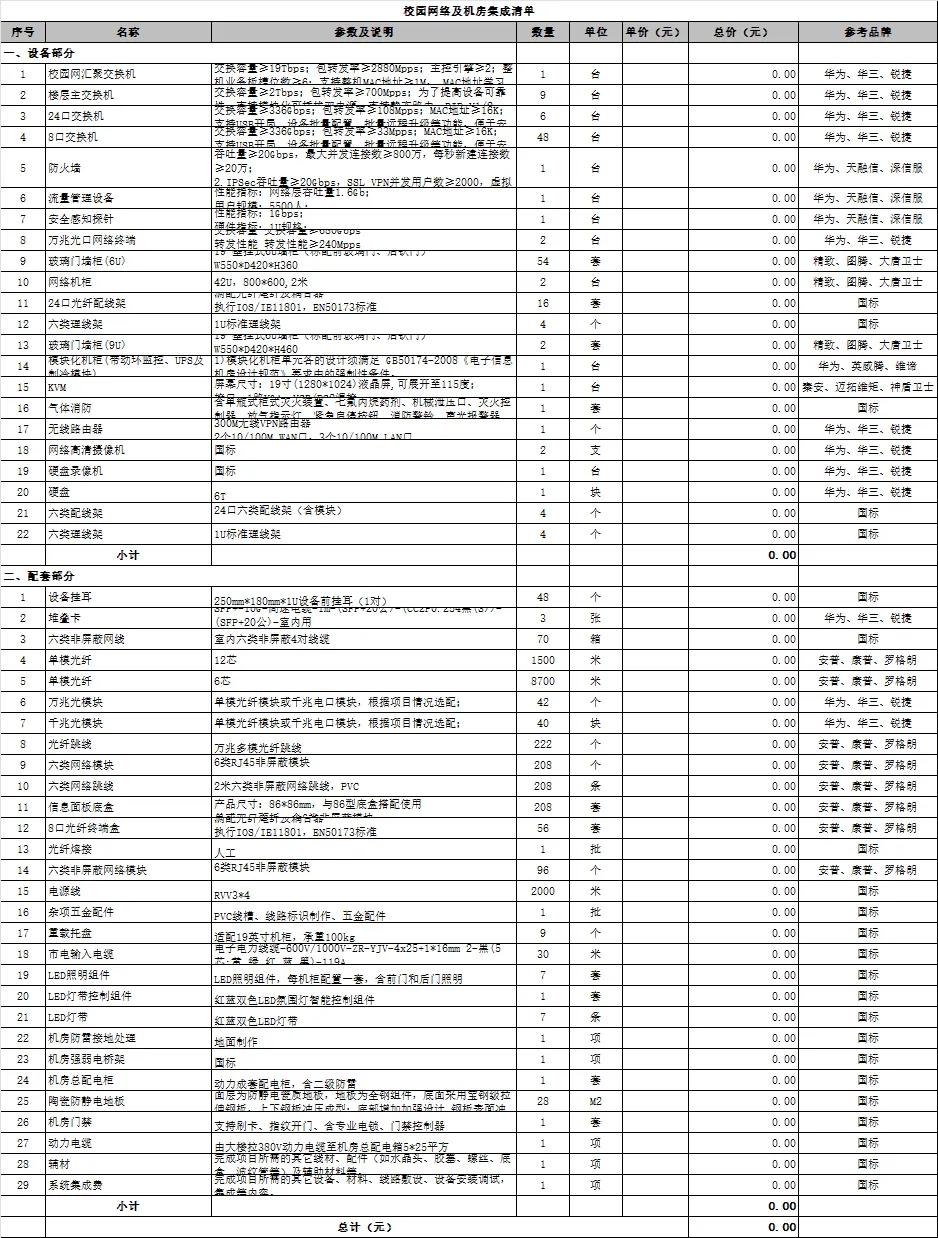 校园网络及机房集成清单
