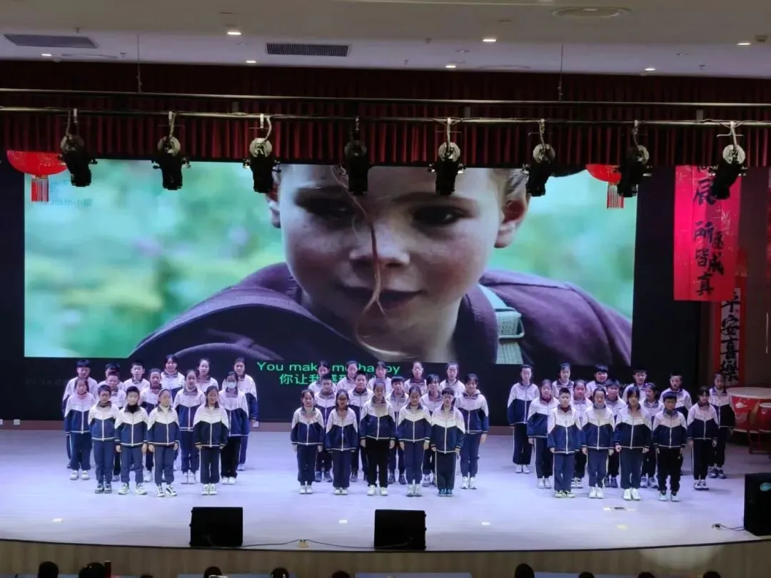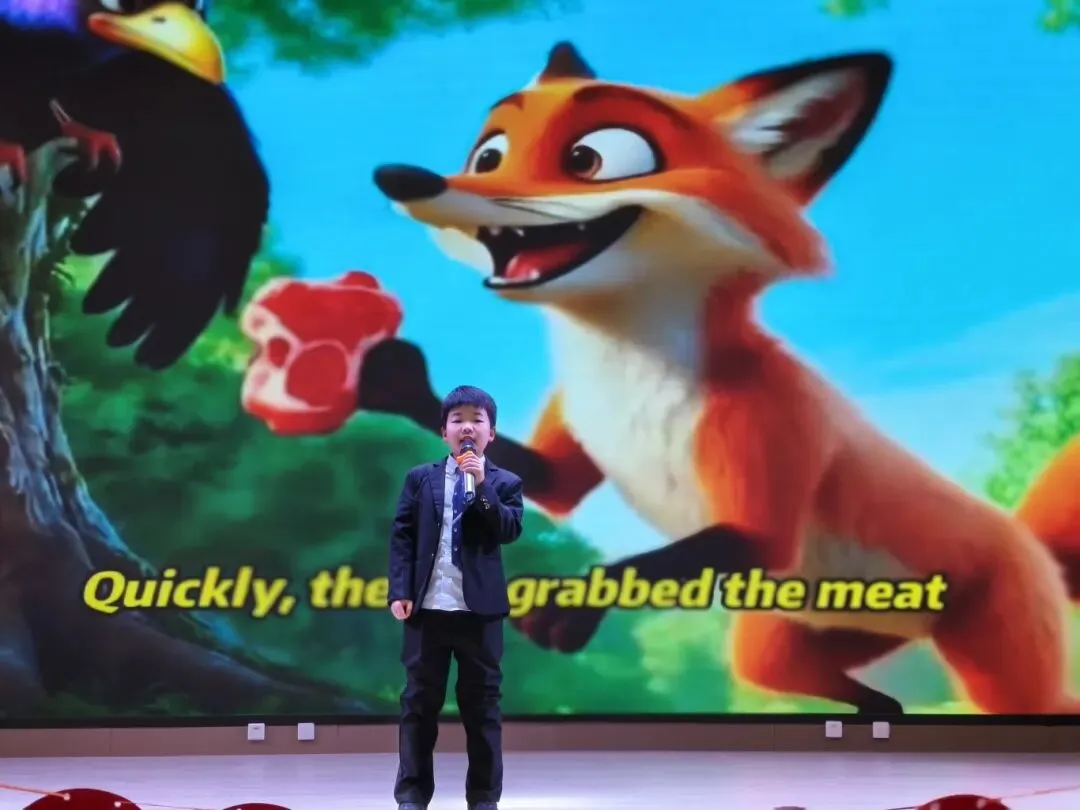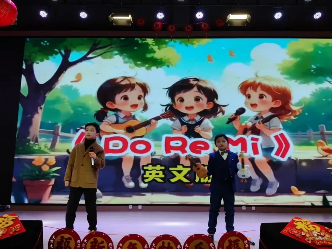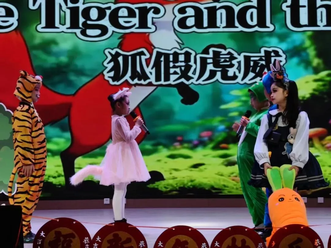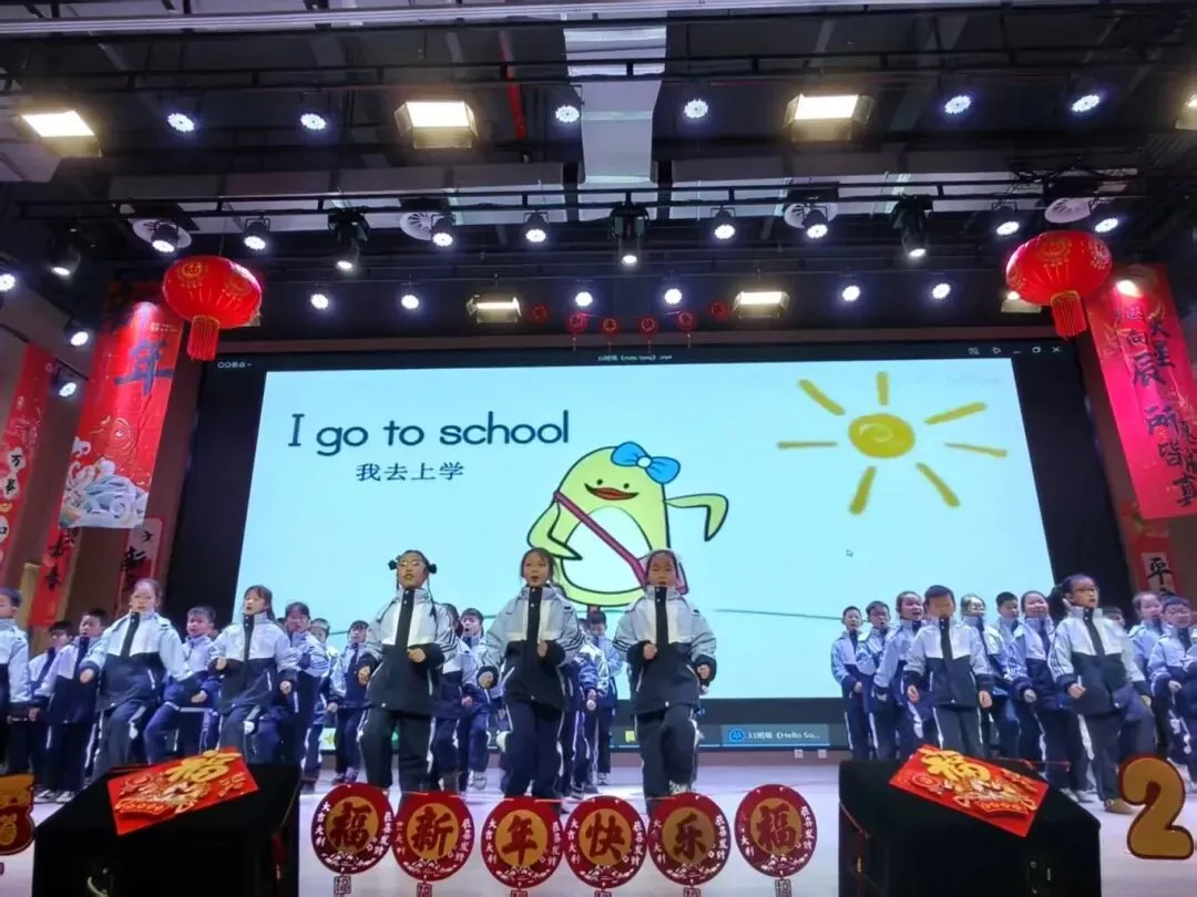 各班开展“每位学生教爸爸、妈妈、爷爷、奶奶学英语单词,说英语句子”活动。从学校延伸至家庭,营造良好的英语学习氛围。 英语小达人争夺赛中,孩子们八仙过海、各显神通。他们语调精准、情感丰富、表演到位、令人叹服。传统故事讲演中,他们用流利的口语讲述着自己对中华传统文化的理解;英文歌曲演绎时,他们是舞台上最闪亮的星;小小绘本表演时,小演员们表演生动,幽默风趣;看图讲故事环节,孩子们的即兴创作和敏捷思维更是惊艳四座。孩子们畅游在英语的世界中,演绎着精彩的自我。