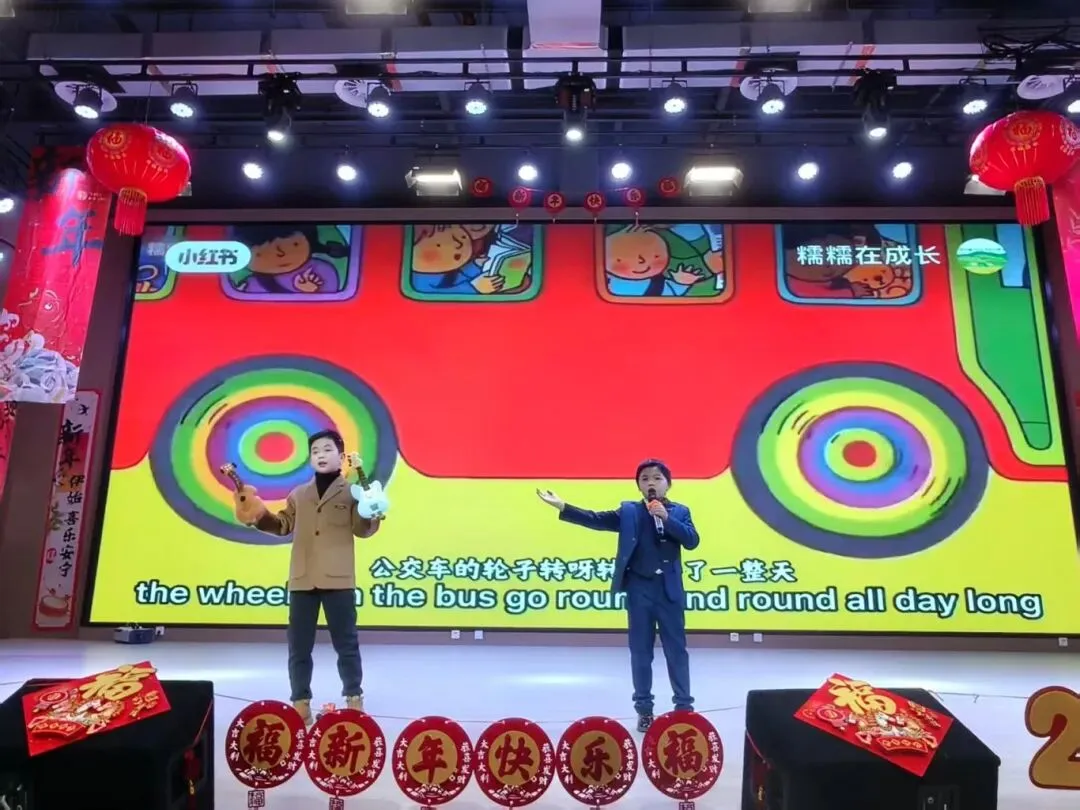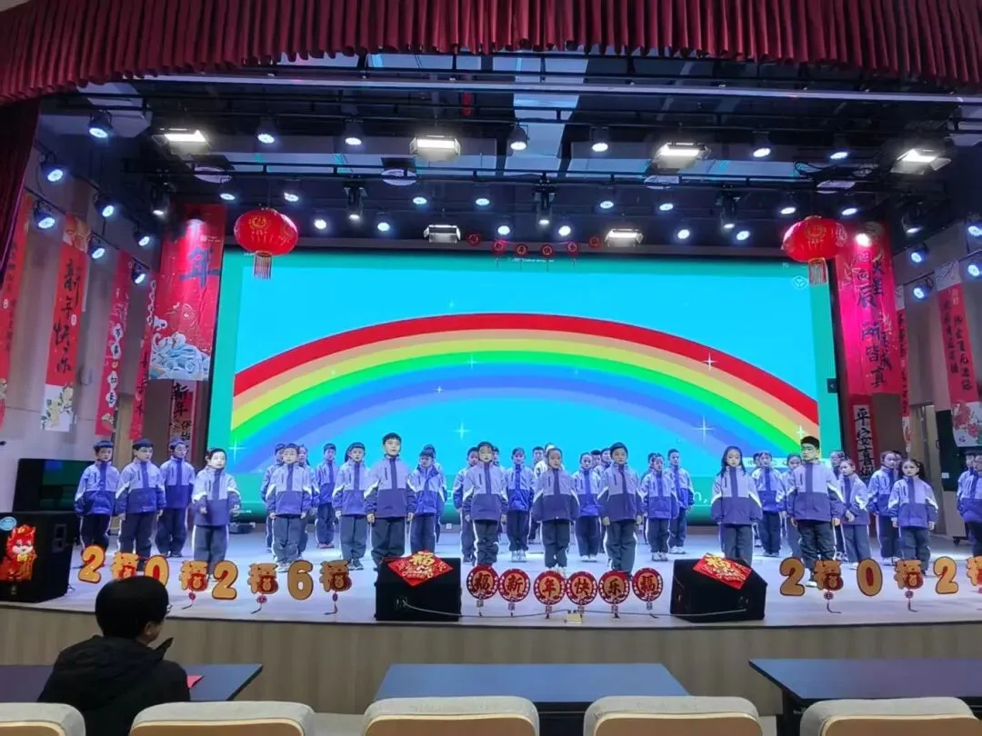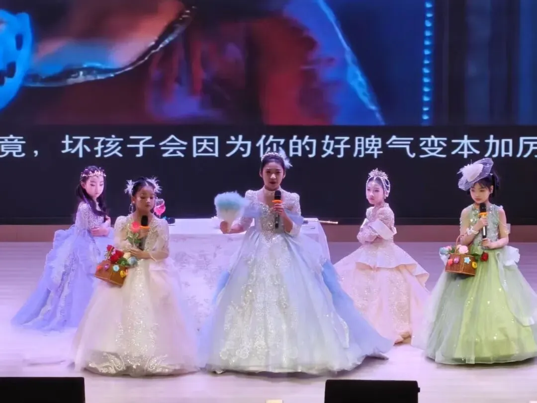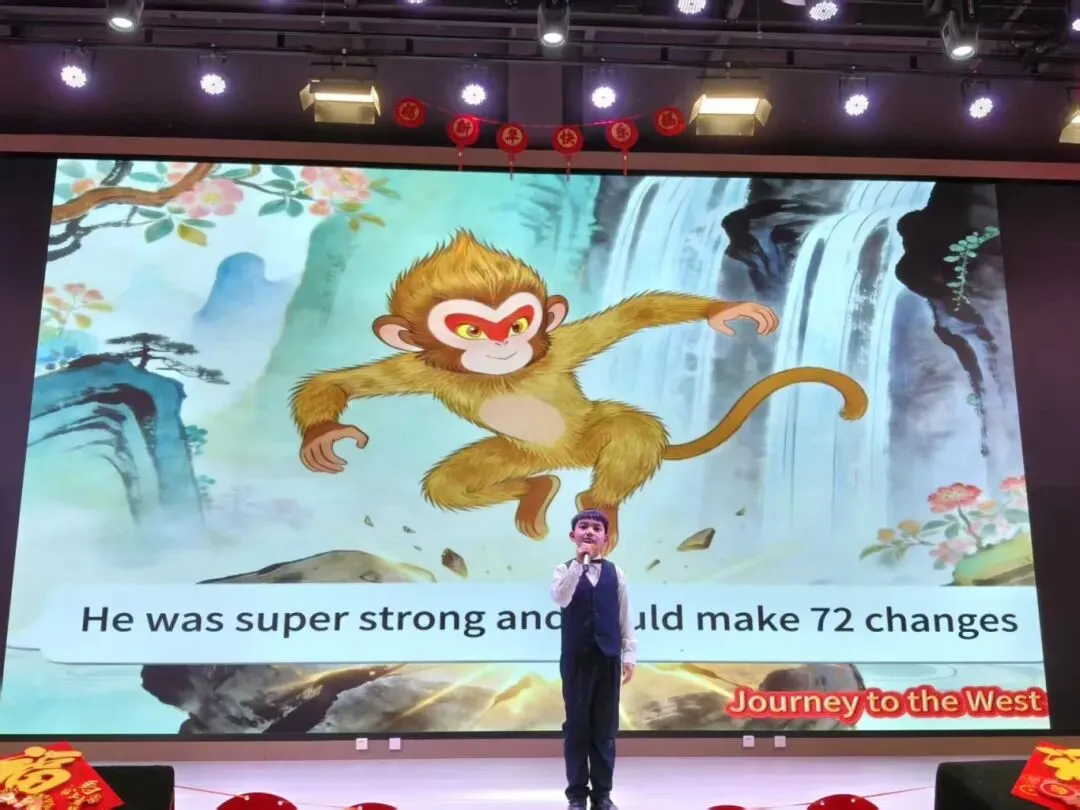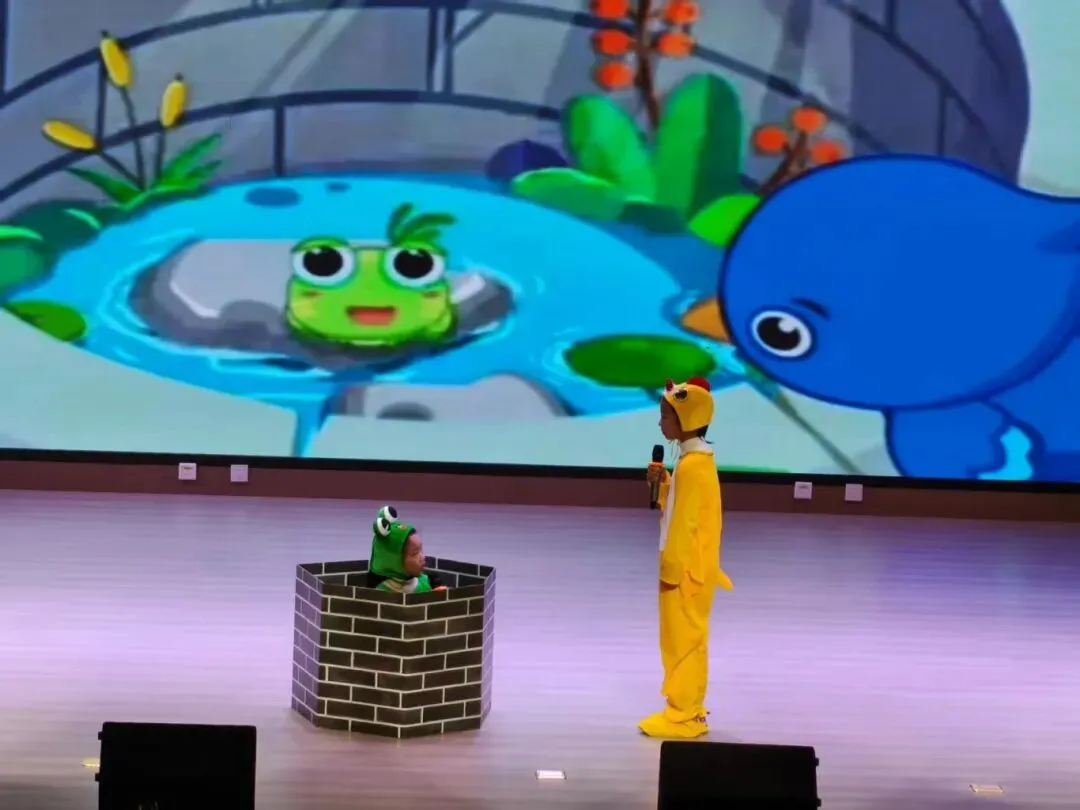 各班开展“每位学生教爸爸、妈妈、爷爷、奶奶学英语单词,说英语句子”活动。从学校延伸至家庭,营造良好的英语学习氛围。 英语小达人争夺赛中,孩子们八仙过海、各显神通。他们语调精准、情感丰富、表演到位、令人叹服。传统故事讲演中,他们用流利的口语讲述着自己对中华传统文化的理解;英文歌曲演绎时,他们是舞台上最闪亮的星;小小绘本表演时,小演员们表演生动,幽默风趣;看图讲故事环节,孩子们的即兴创作和敏捷思维更是惊艳四座。孩子们畅游在英语的世界中,演绎着精彩的自我。