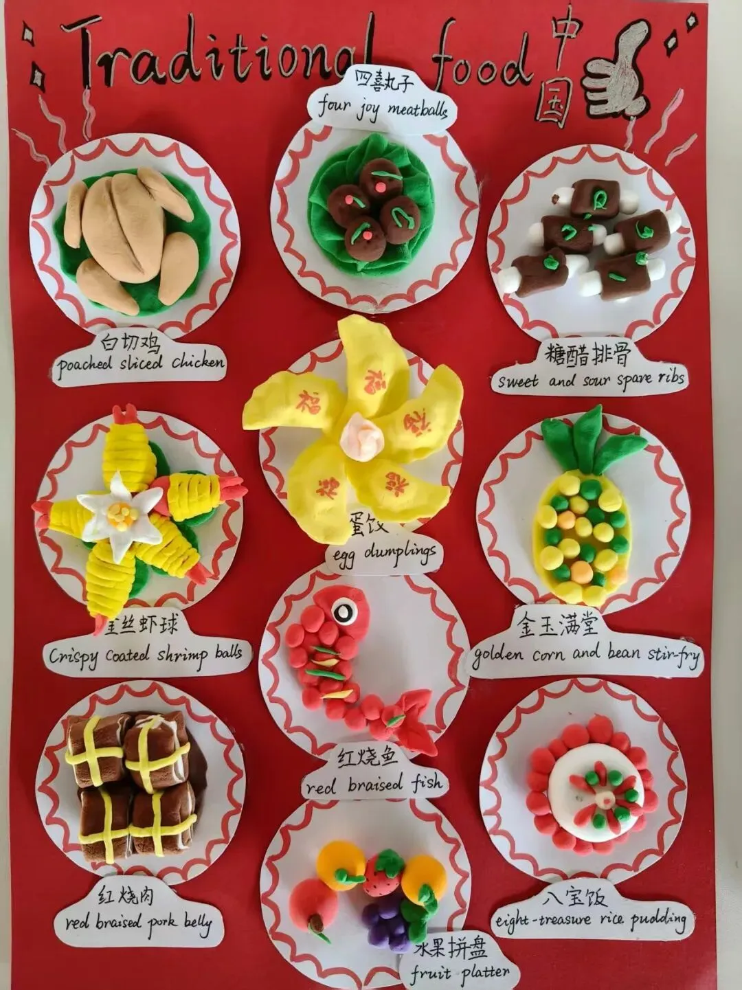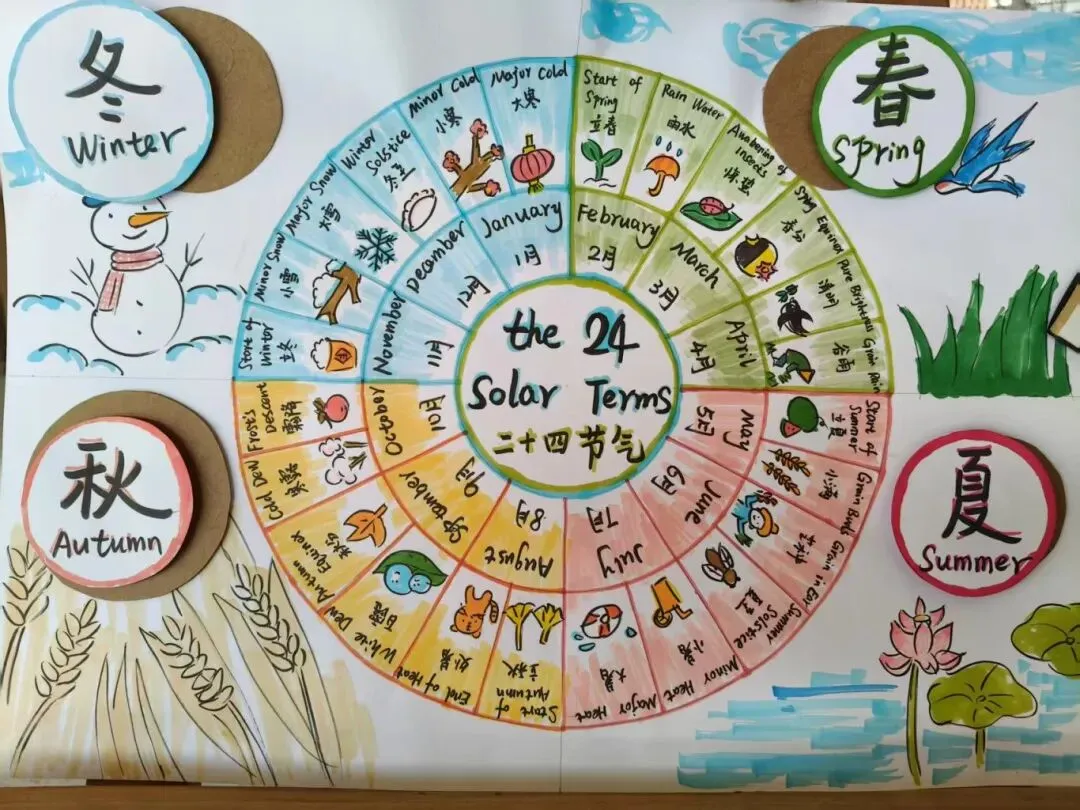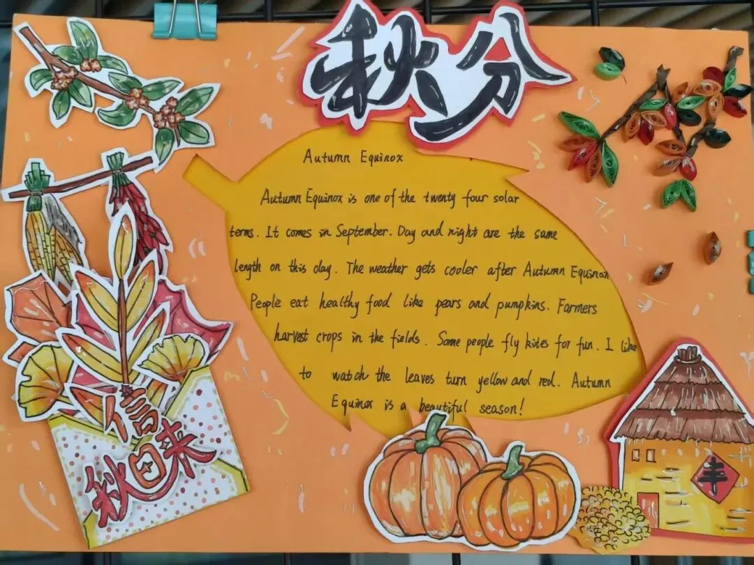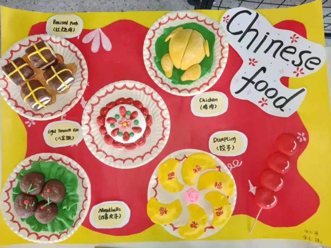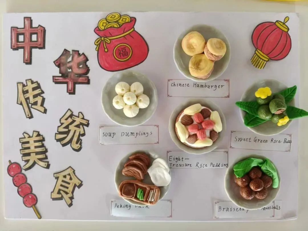 三年级的孩子通过对单元知识的理解,展开想象,设计了有个性,有创意的项目作品。 让英语活动走进生活,让各种知识充盈英语学习,一幅幅色彩斑斓、生动形象的作品,展示出了孩子们运用英语的能力和实践能力。 四年级的孩子制作了一桌桌中国传统美食,既培养动手能力、突破自我、又提高了认知水平和学习英语的兴趣。 五年级的孩子用英语介绍二十四个节气,通过图文介绍一个或者二个节气,感受中国古代人民的智慧和文化。 六年级的孩子们结合中国传统节日,发挥想象力和创造力,用画笔和所学单词精心创作出一把把精美的扇子,充分体现了同学们的书写能力和绘画水平。 本次英语节为白云学子提供了一个展示自我、锻炼自我、超越自我的平台,让孩子们充分感受到英语学习的快乐和成就感。英语节活动虽已落幕,但是孩子们对英语学习的热情已被熊熊点燃。期待孩子们能用英语打开更广阔的世界!博观而约取,厚积而薄发,相信每一位白云学子都能撑起英语这只长篙,满载一船星辉,向着美好的未来进发!文字 | 童慈霞