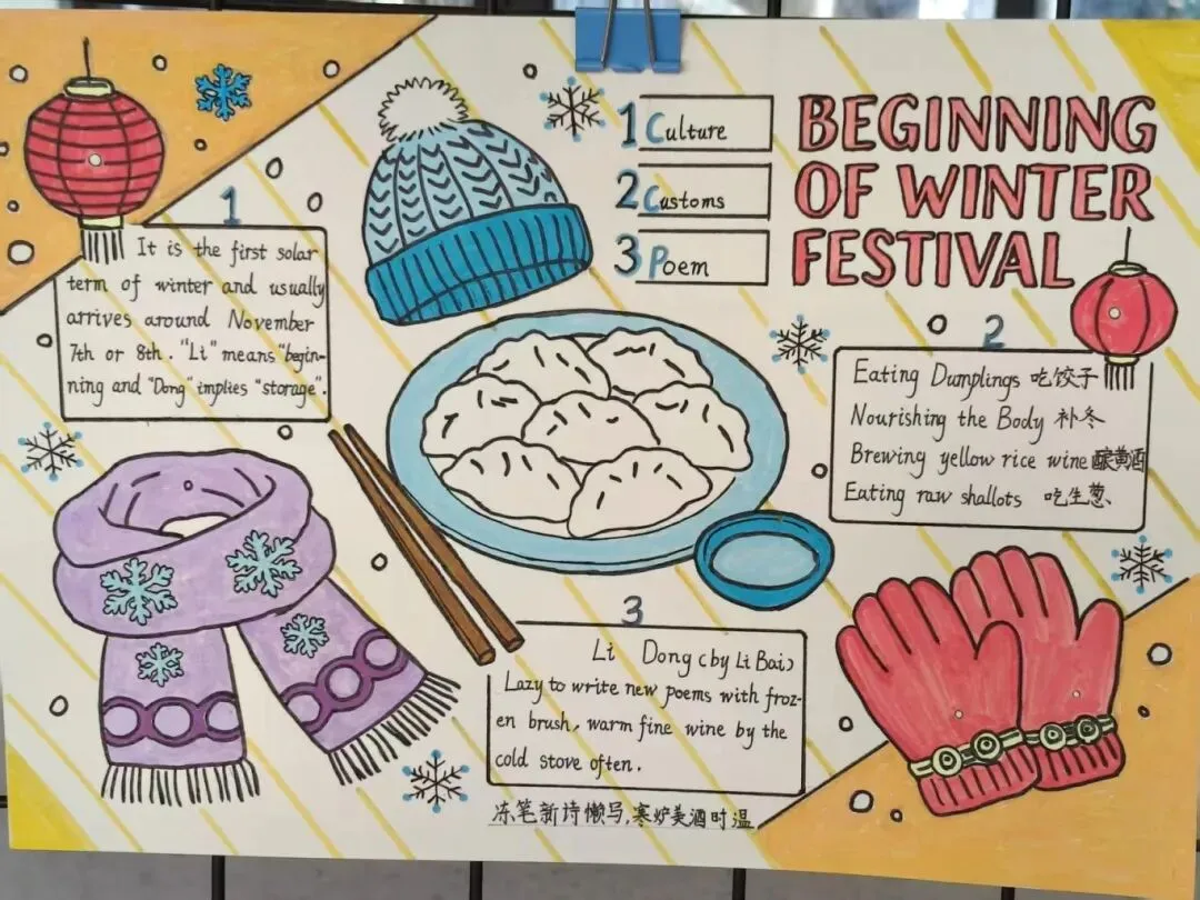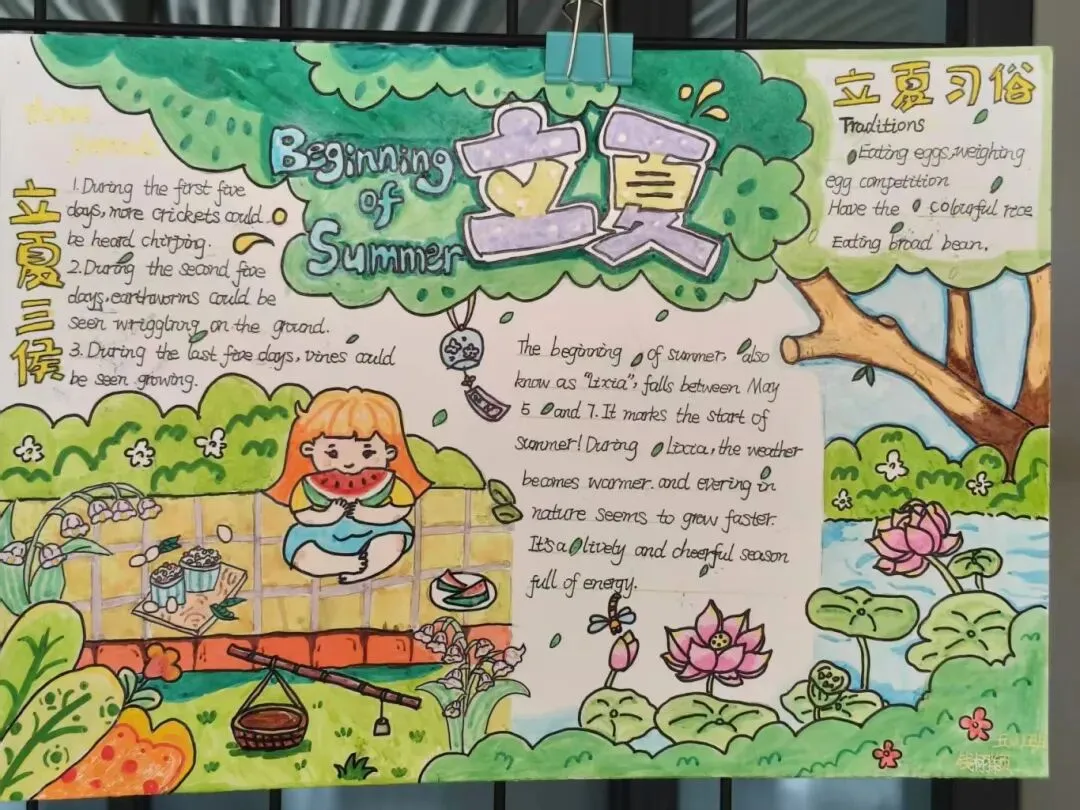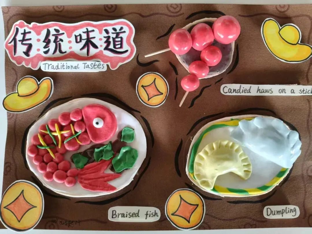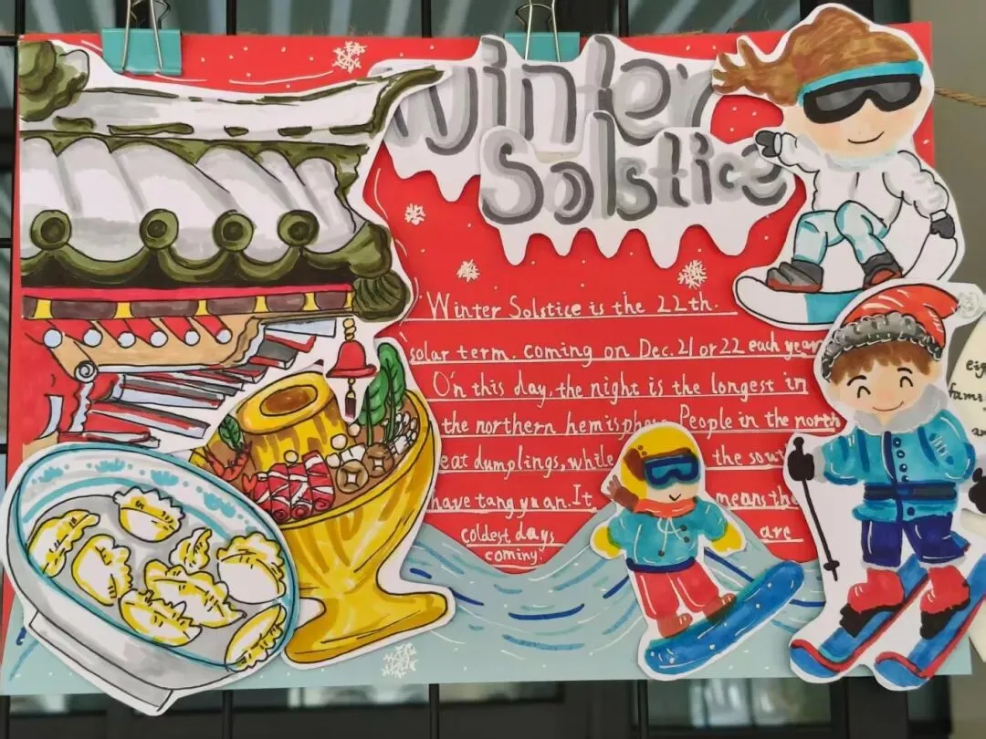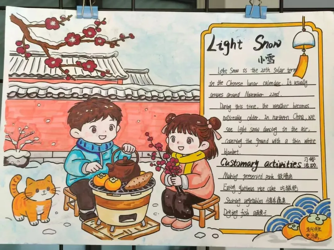 三年级的孩子通过对单元知识的理解,展开想象,设计了有个性,有创意的项目作品。 让英语活动走进生活,让各种知识充盈英语学习,一幅幅色彩斑斓、生动形象的作品,展示出了孩子们运用英语的能力和实践能力。 四年级的孩子制作了一桌桌中国传统美食,既培养动手能力、突破自我、又提高了认知水平和学习英语的兴趣。 五年级的孩子用英语介绍二十四个节气,通过图文介绍一个或者二个节气,感受中国古代人民的智慧和文化。 六年级的孩子们结合中国传统节日,发挥想象力和创造力,用画笔和所学单词精心创作出一把把精美的扇子,充分体现了同学们的书写能力和绘画水平。 本次英语节为白云学子提供了一个展示自我、锻炼自我、超越自我的平台,让孩子们充分感受到英语学习的快乐和成就感。英语节活动虽已落幕,但是孩子们对英语学习的热情已被熊熊点燃。期待孩子们能用英语打开更广阔的世界!博观而约取,厚积而薄发,相信每一位白云学子都能撑起英语这只长篙,满载一船星辉,向着美好的未来进发!文字 | 童慈霞