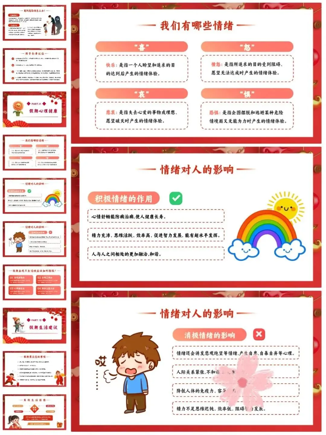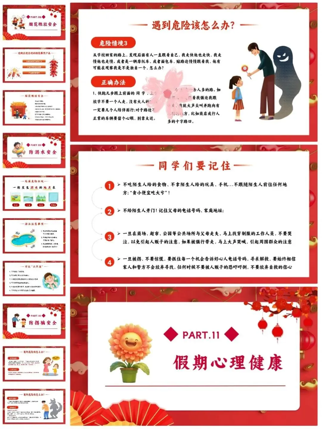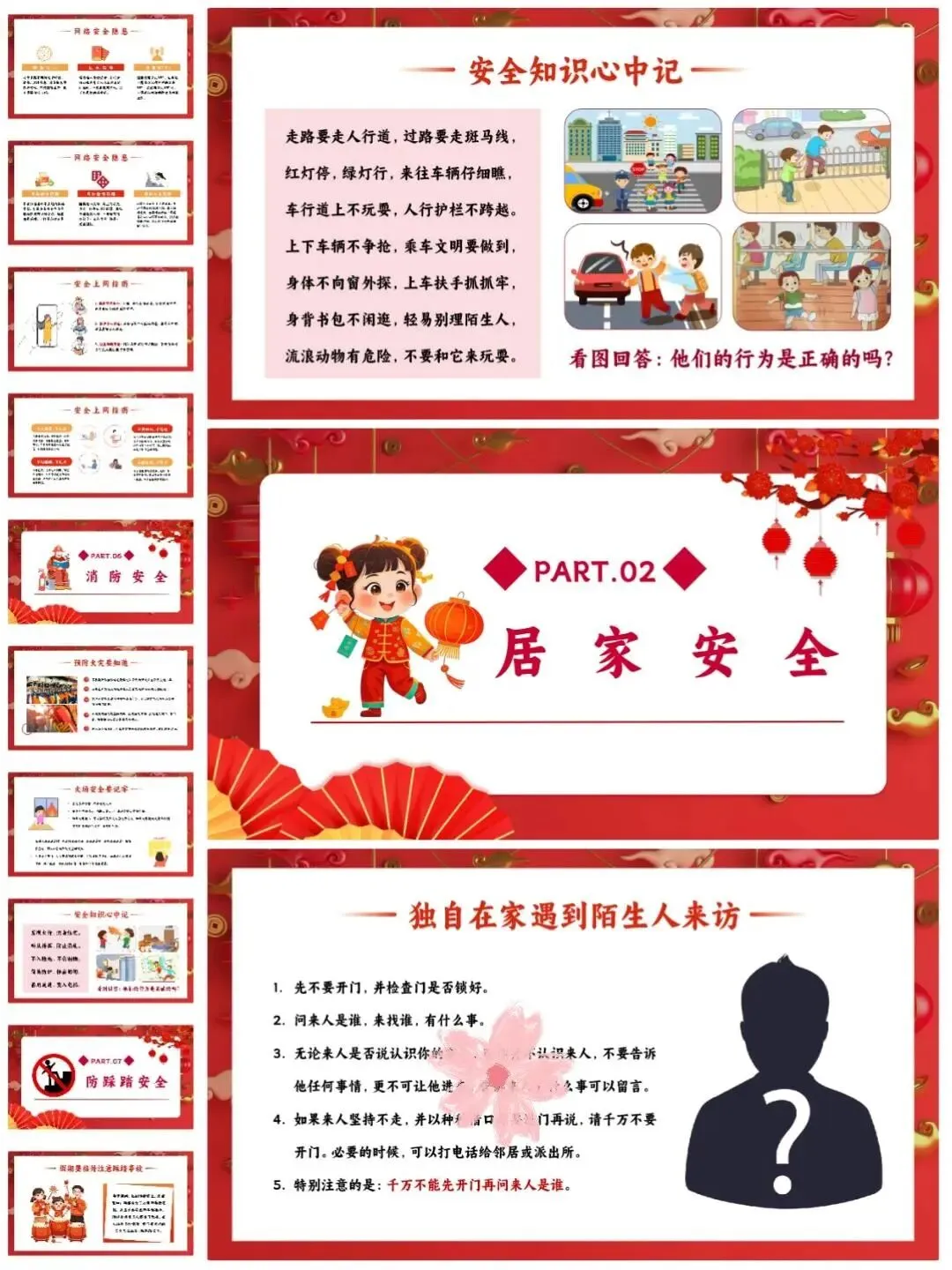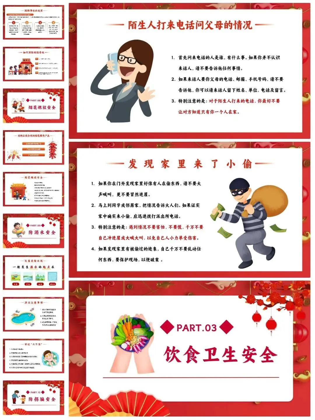 [仙女R]临近假期,安排寒假安全教育班会[打卡R],学生们一起学习安全知识[红书R],让这个寒假过得既快乐又安心![点赞R] [向右R]班会PPT一共有12个重要部分,分别是:交通安全、居家安全、饮食卫生安全、️防寒防冻安全、️网络安全、消防安全、️防踩踏安全、烟花燃放安全、️防溺水安全、防拐骗安全、️假期心理健康、假期生活建议。