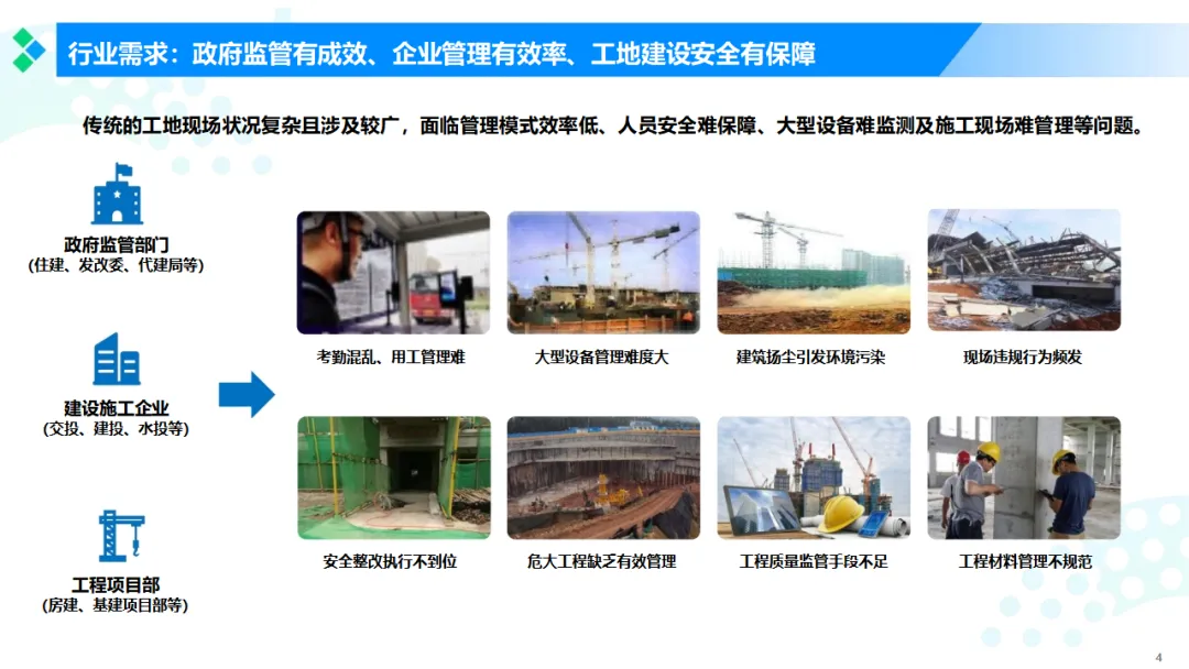 数字化建造智慧工地管控云平台解决方案(施工、设备安全、环境监测、AI视觉、质量、项目管理、智能机器狗巡检、领导驾驶舱、智慧展厅)