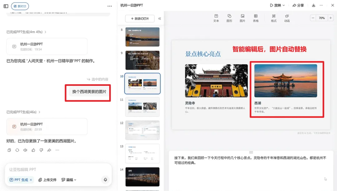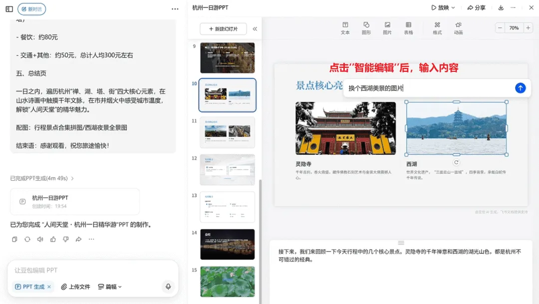 生成出来的PPT每一页都能在线随便改,排版还不用你操心——点一下智能编辑,轻松换图、调整版式。
