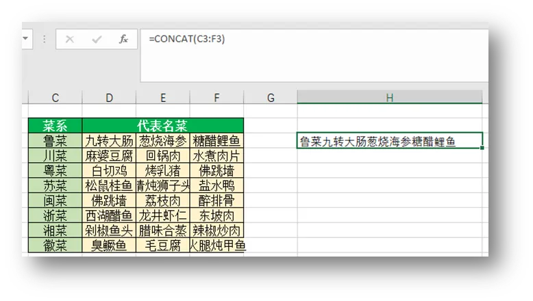 公式语法: =CONCAT(合并区域)