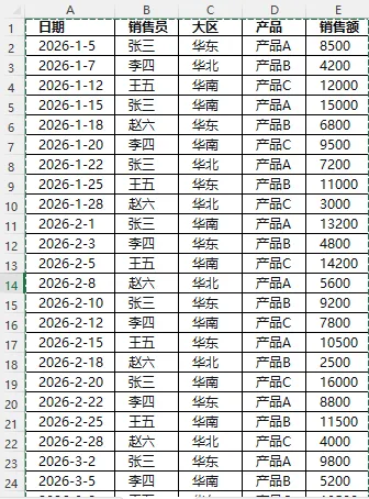 比如想提取华东地区,销售额大于等于10000的单子。我们可以设定一个条件,取一个和表格中的标题不一致的的标题,记住不要一致。