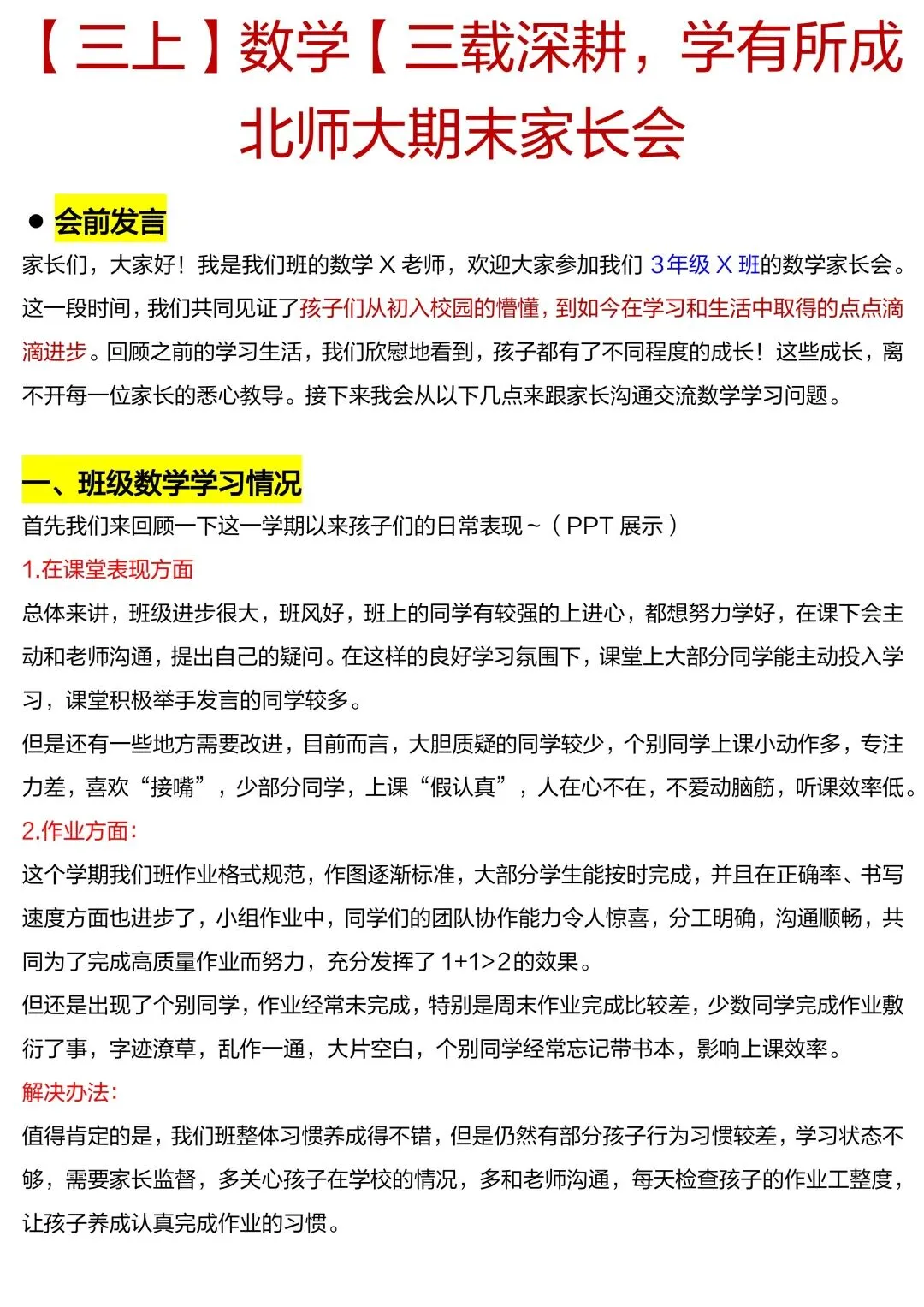 >【三年级上】【数学】北师大期末家长会PPT+逐字稿【三载深耕,学有所成】