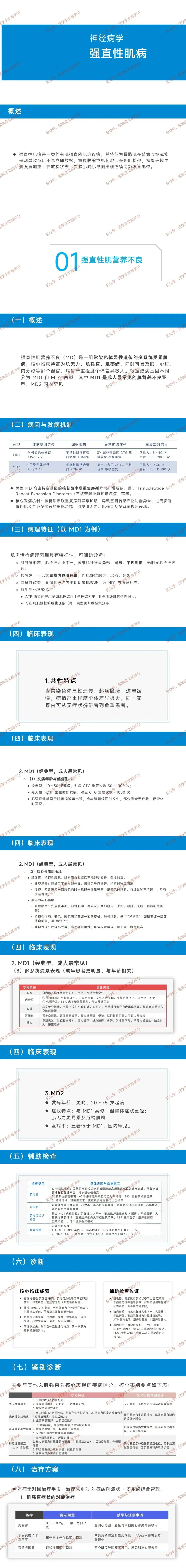 - 治疗:无根治方法,肌强直用美西律、卡马西平等对症;多系统管理(心脏起搏器植入、白内障手术、血糖控制)。