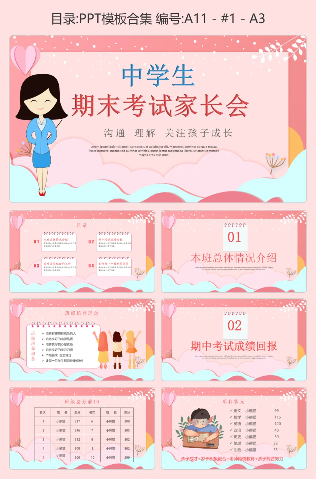 PPT 排版简洁大气,涵盖成绩分析、学情总结、家校共育等核心板块📊 配色沉稳不花哨,一键替换数据就能用。
