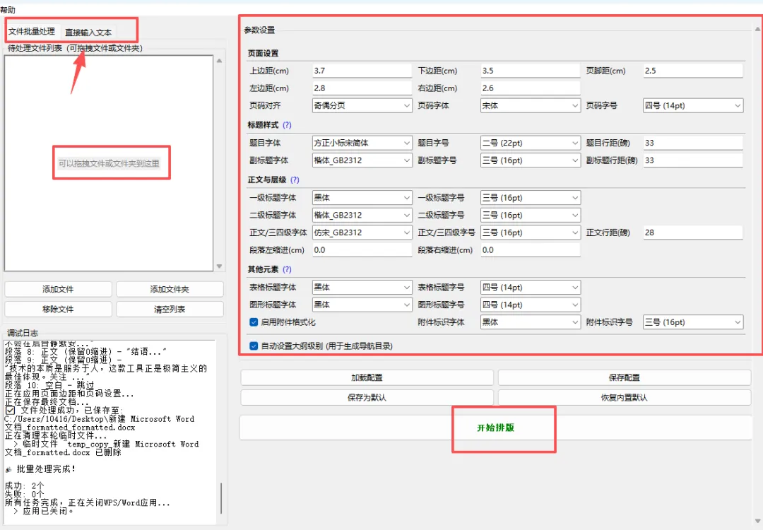 平时写文档的时候写完发现文档混乱,没有统一标准,看起来很别扭,每写一个标题,都要手动选字体、调字号、加粗,很麻烦。有时候,需要把一堆文字变成一份正式、规范、易于阅读的成品时,排版工具就显得很必要了。今天介绍的软件是免费Word文档智能排版工具。能快速进行Word文档排版,提升工作效率。2、条件参数,分别设置自己想要的参数。点击开始排版,排版速度很快。以上就是这两款软件的介绍和使用教程了,如果你也需要,这款Word智能排版工具值得一试。免责声明
