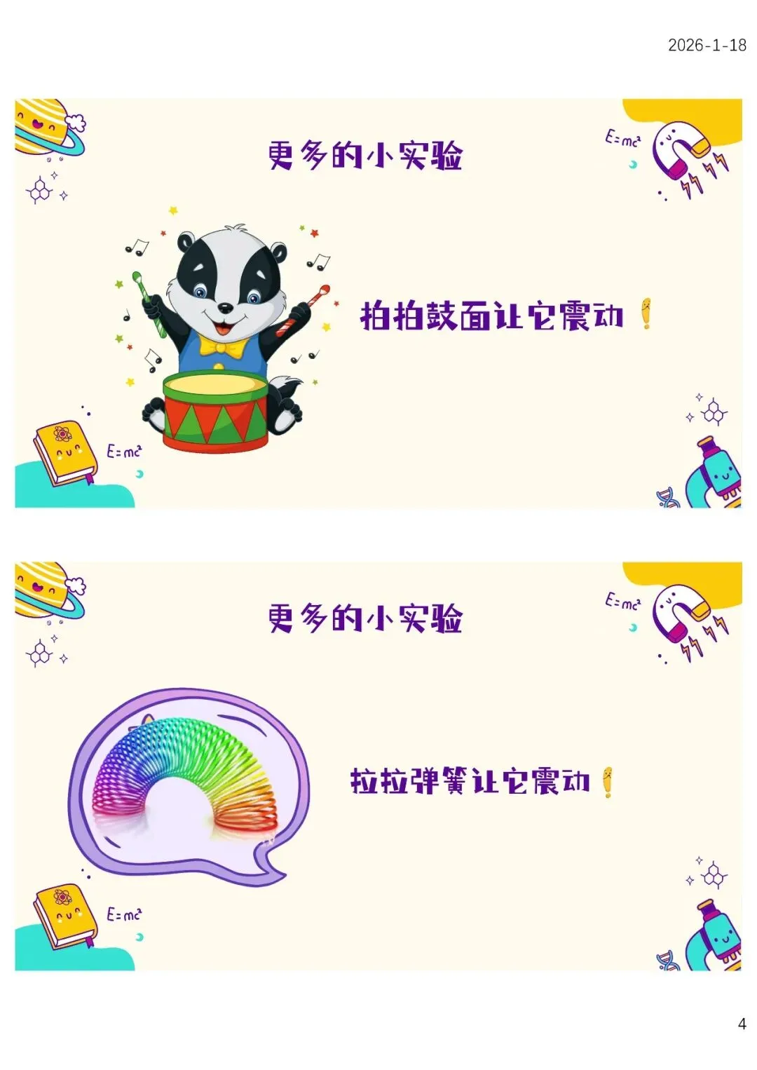 教师:通过今天的活动,我们不仅知道了声音是由物体振动产生的,还学会了如何利用日常生活中的物品制作简单的发声装置,希望你以后也能多多观察身边的声音,继续探索更多关于声音的秘密!