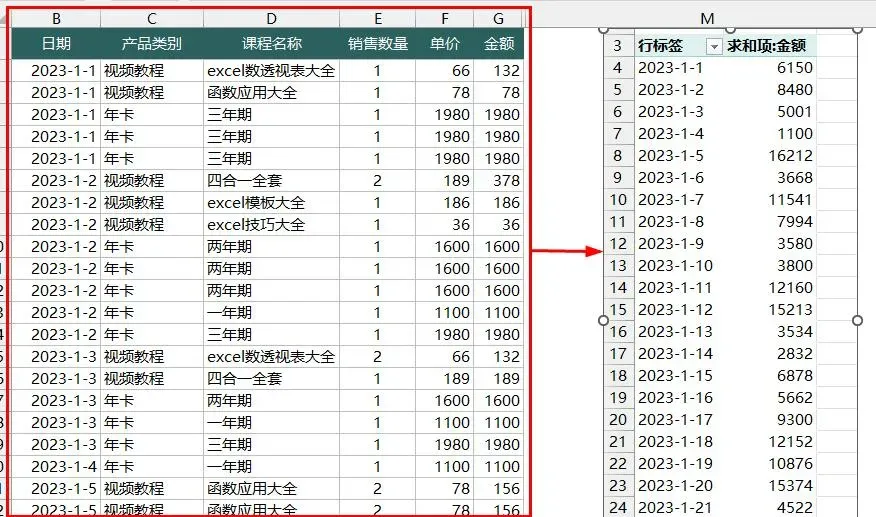 步骤2添加每日销售汇总数字