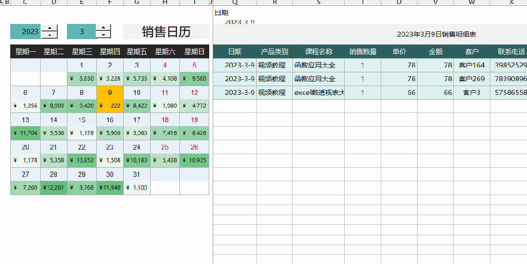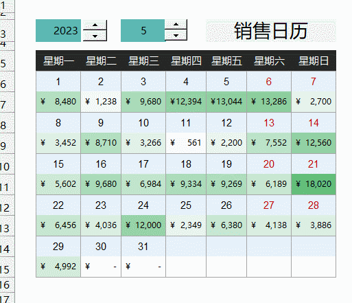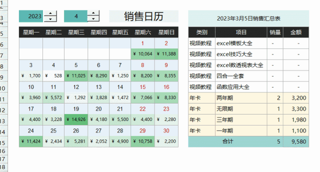 兰色说:销售日历模板已收录进兰色excel模板大全的第13集,每套模板都含5~30集视频教程。