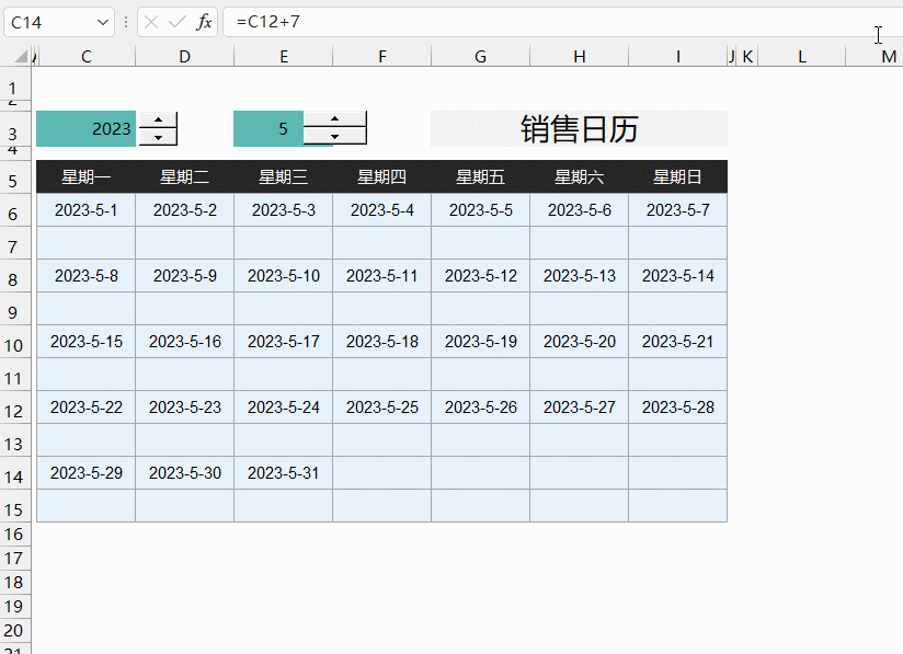其他日期用+1和+7即可生成。