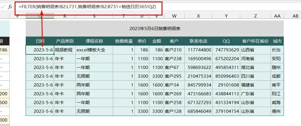 还可以生成详细销售清单