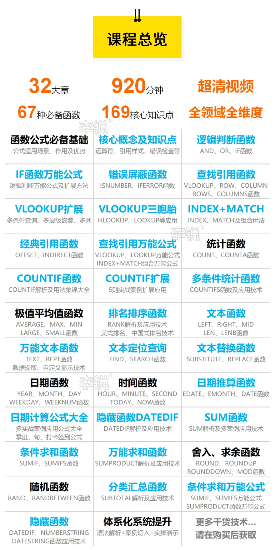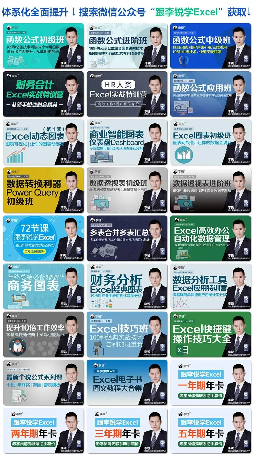 除了本文内容,还想全面、系统、快速提升Excel技能,少走弯路的同学,请搜索微信公众号“跟李锐学Excel”点击底部菜单的“知识店铺”或下方扫码进入。