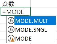 可以看到是有三个类似的函数,分别是MODE.MULT、MODE.SNGL、MODE,MODE.MULT主要用于返回数据中的多个众数的情况,MODE.SNGL、MODE返回一个众数(当数据中有多个众数是返回出现的第一个),区别只是MODE函数为了兼容旧版的公式而前面两个带后缀的是新的函数,旧版本的Excel中不存在。今天主要讲众数,讲第三个,第二个和第三个用法一致。