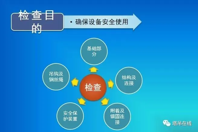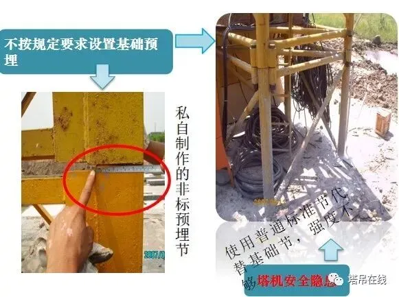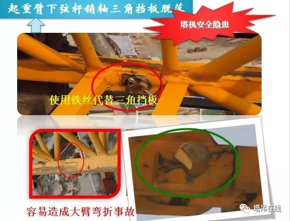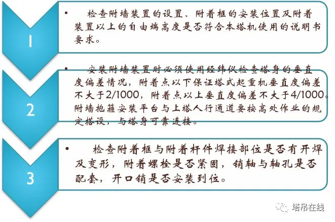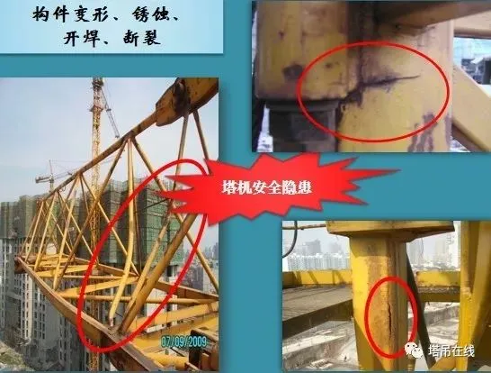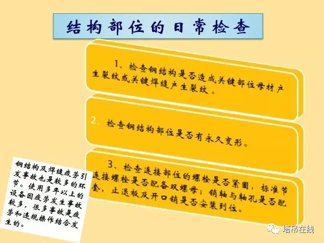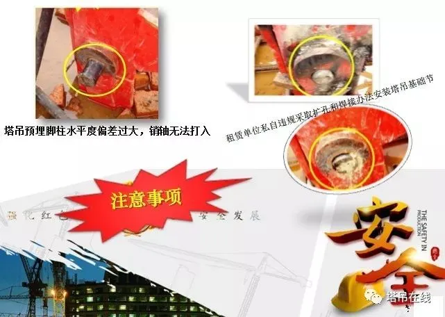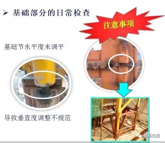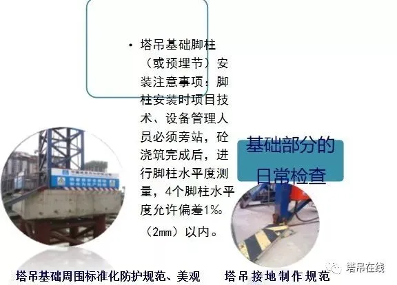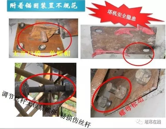 1、基础预埋件是否符合说明书要求,预埋件是否有变形、开焊、裂纹现象发生,连接螺栓及销轴是否可靠。