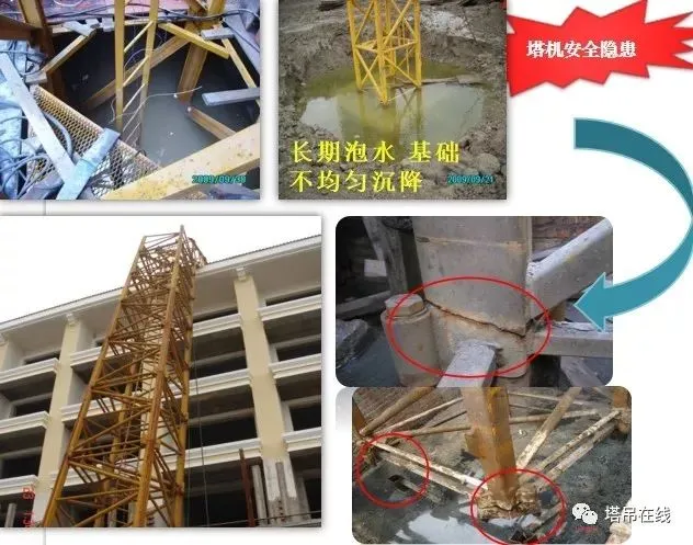 2、塔吊基础排水措施是否可靠,有无积水现象发生。