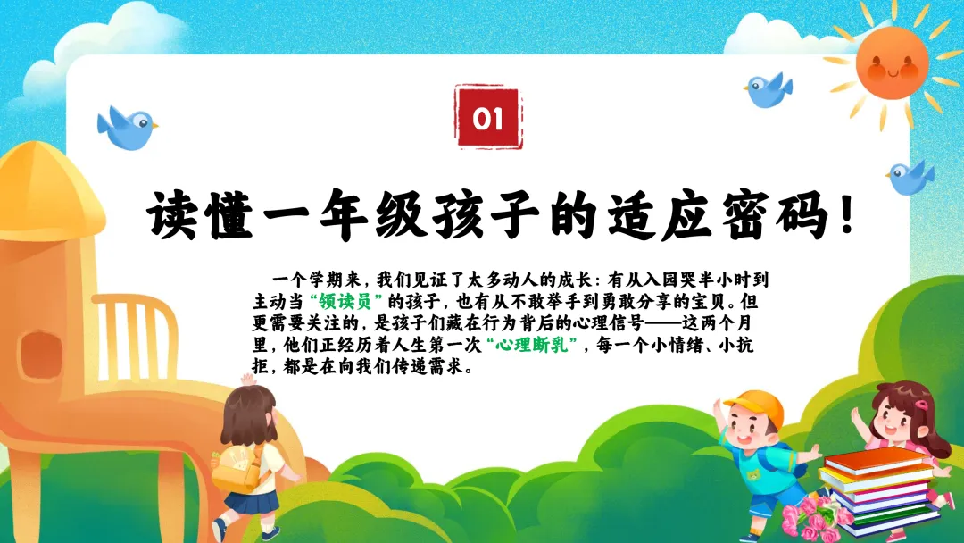 开学那天,目送他们背着小书包走进校园的情景还历历在目。那一刻,他们迈出的不仅是入学第一步,更是人生从“家庭中心”走向“社会集体”的关键跨越。转眼间,这趟“一年级列车”已平稳行一、读懂一年级孩子的适应密码——比成绩更重要的是心理扎根