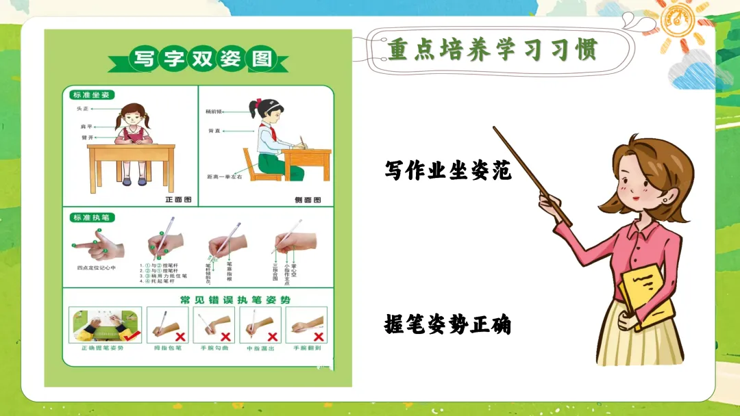 - 体态是基础:狠抓“一寸一拳一尺”的坐姿和正确的执笔姿势。书桌清空,只放当下学习任务所需物品,减少分心。