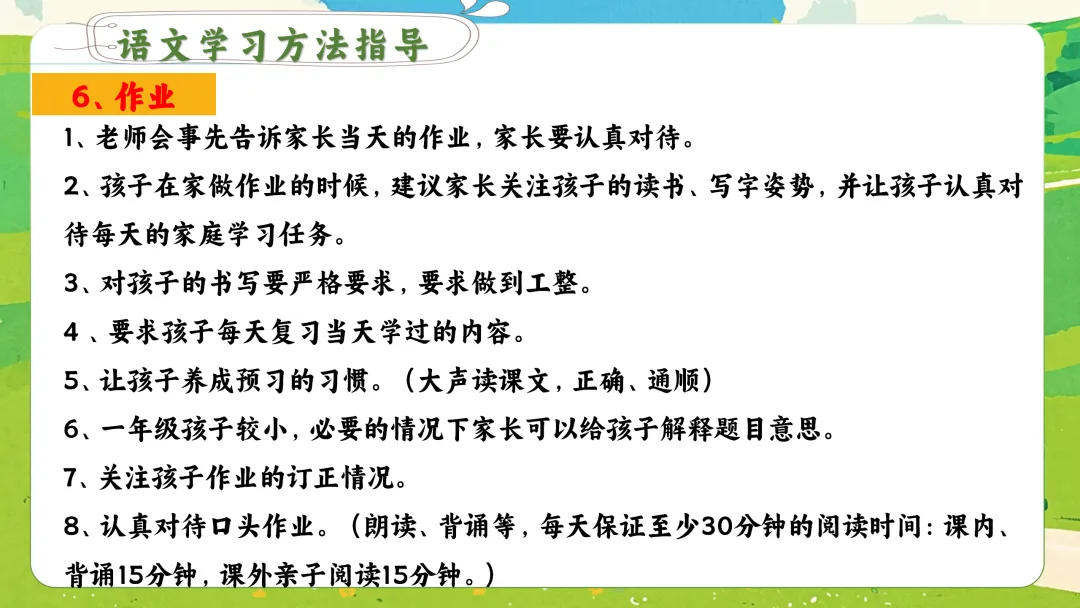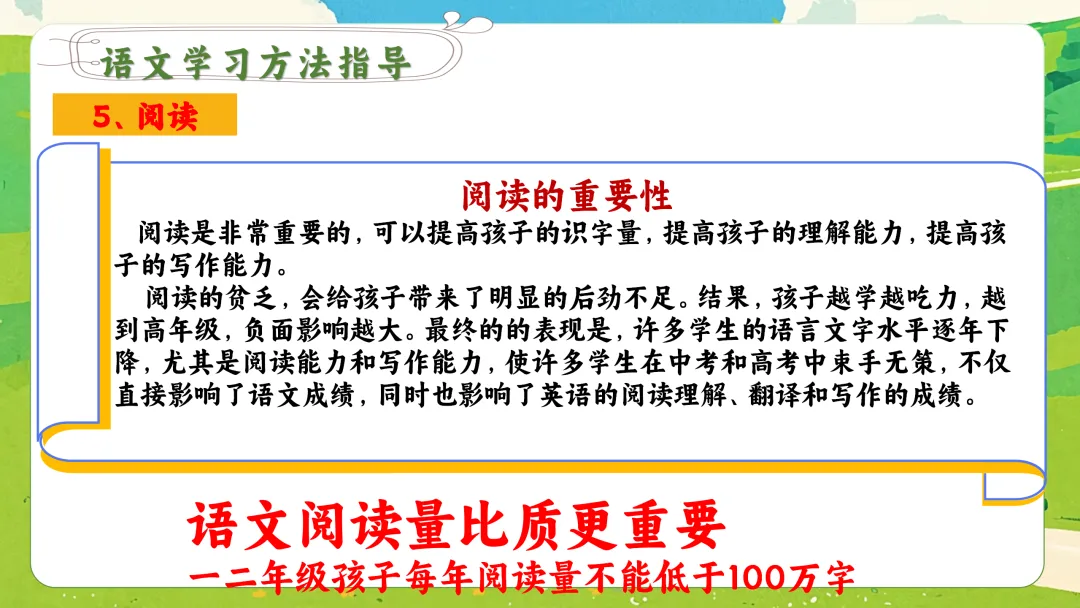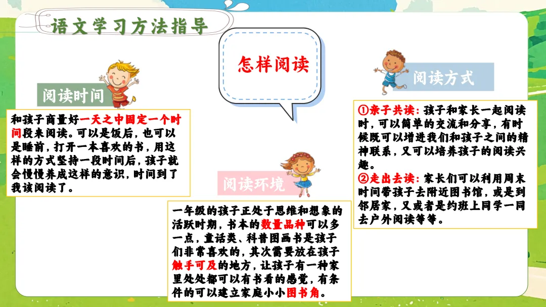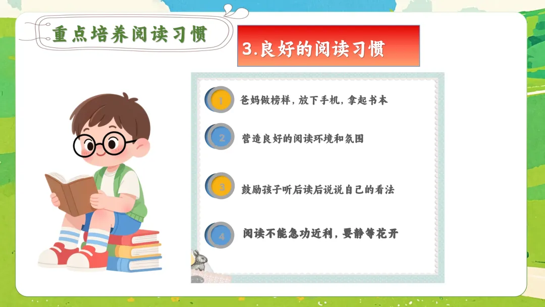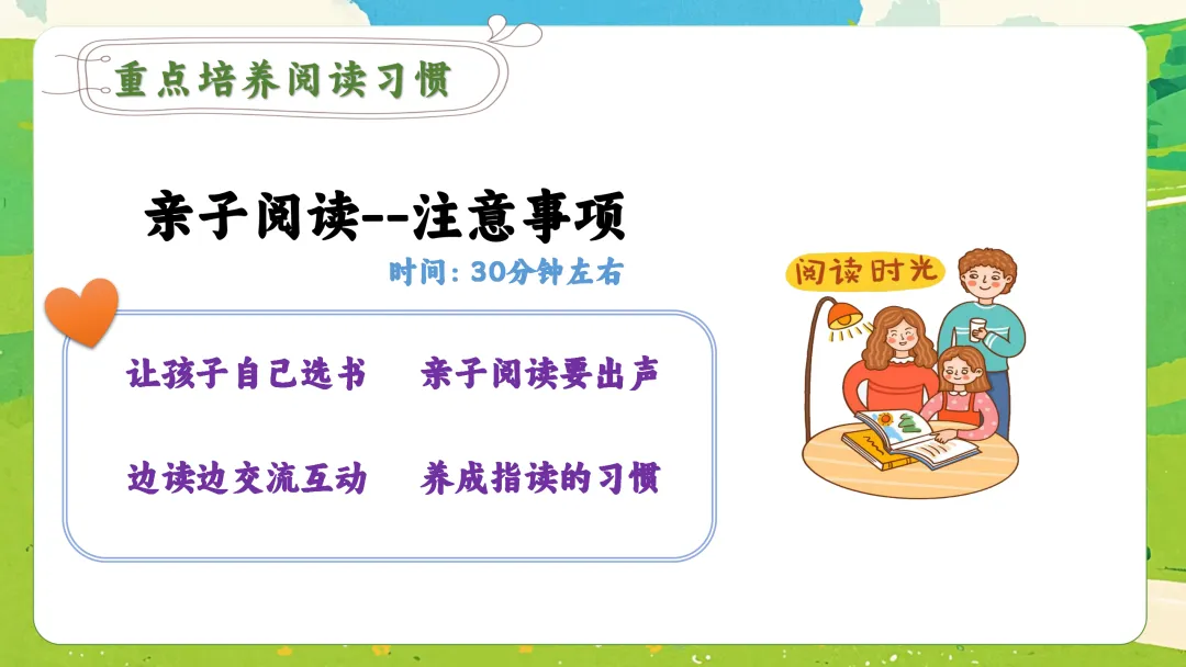 3. 亲子共读:每天固定20-30分钟,和孩子一起大声朗读,交流感受。