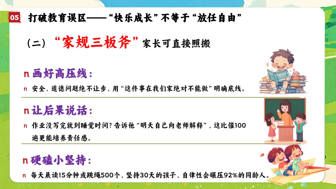 3. 阅读与表达:目标是从“会复述”到“能表达”。这是重点。从“看图说话”开始:五、打破教育误区:“快乐成长” ≠ “放任自由”
