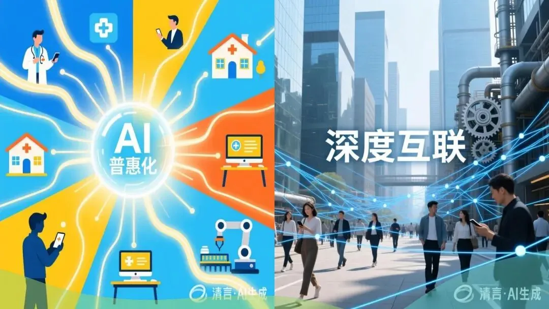 我们看过去的 2025 年,我不知道大家有没有一些关键词是充斥着你的整一年的,我在准备这次演讲的时候一直在思考,后来我发现有两个关键词是一直充斥着我们的,一个就是 “AI 的普惠化”,再一个就是“深度互联”。