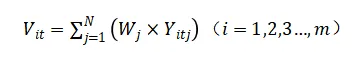 其中,Wj是各指标的权重;Yitj是各指标数据标准化后处理的结果。