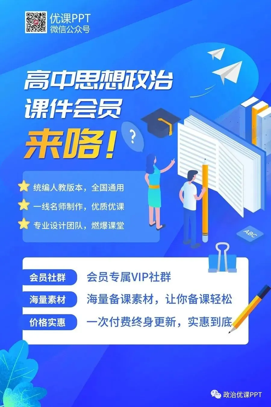 ★ 政治优课PPT【会员群】是我们主打的原创课件产品,其中包含整个高中阶段统编版最新版本政治七本教材的更新计划。