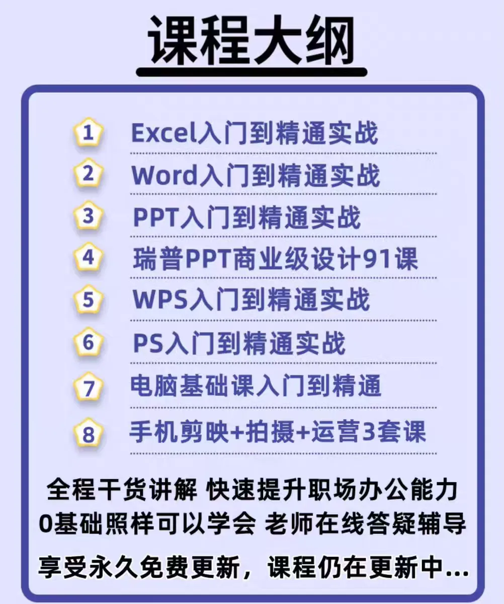 WPS(excel+ppt+word)三套全新办公培训课程 全部费用258元 名师辅导