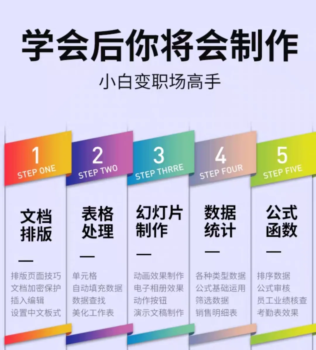 每天职场面试有应届毕业生、有职场老手、有名校高材生、有留学海归......大家在简历上不约而同地写着“熟练掌握办公软件”,但等到入职后才发现,他们在实际工作中使用办公软件的情况却令人大跌眼镜:写文档只会打字,连怎么插入图表和设置页眉页脚都不懂;做表格不懂函数,做个考勤统计表要大半天,数据居然用计算器在算;最糟心的是PPT,只会套模板,花里胡哨......难怪HR纷纷吐槽:“现在的大学生可别说你是精通WPS了,只能是精通打开WPS!”那么,如何在面试中证明自己是真的具备熟练运用WPS的技能?为自己在岗位竞争中加分呢?赶紧报名Excel、WPS、office办公软件文员培训班