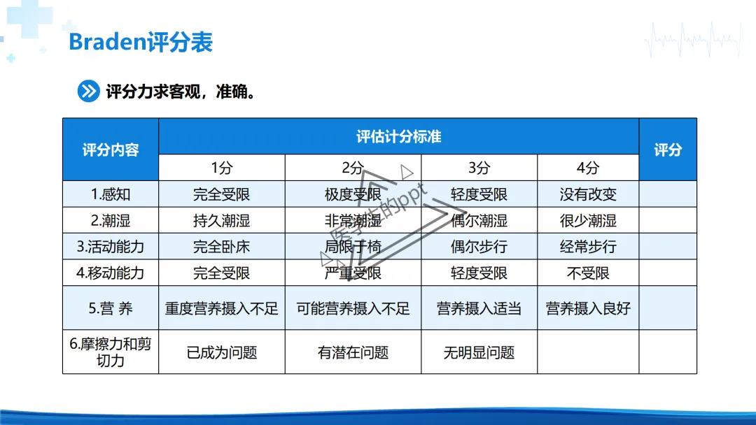 BRADEN压力性损伤评分表详解ppt