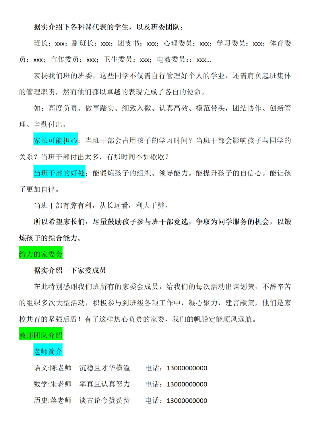 👍所有内容板块均支持编辑,替换班级信息即可使用,助你高效筹备一场有温度、有深度、有高度的家长会!