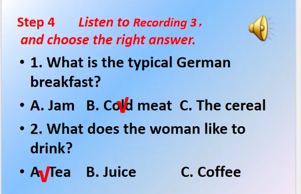 这份课件,几乎达成课堂目标。剪辑每一段听力,就是花费很多天,到设计学案,制作PPT。目的就是帮助学生学会听英语。