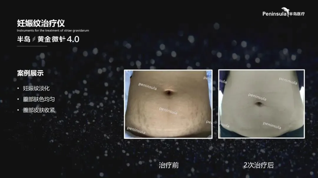 面对妊娠纹,我们无需再停留在效果有限的传统方法上。半岛黄金微针4.0通过射频与微针的黄金组合,直达真皮层,从根源上刺激胶原新生与重组,已帮助众多宝妈成功淡化了妊娠纹,重获紧致光滑的腹部肌肤。