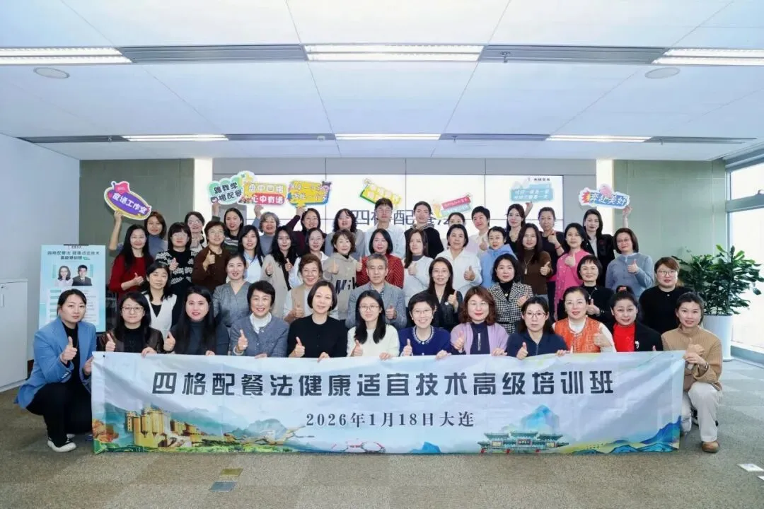 2026年1月16日,《四格配餐法健康适宜技术高级培训班》在大连举行。来自北京、上海、天津、重庆、台湾、成都、西安、杭州、沈阳、长春 、宁波、青岛、德州和大连14个城市56位注册营养师、公共营养师、医生、高校教师等参加本次培训学习。