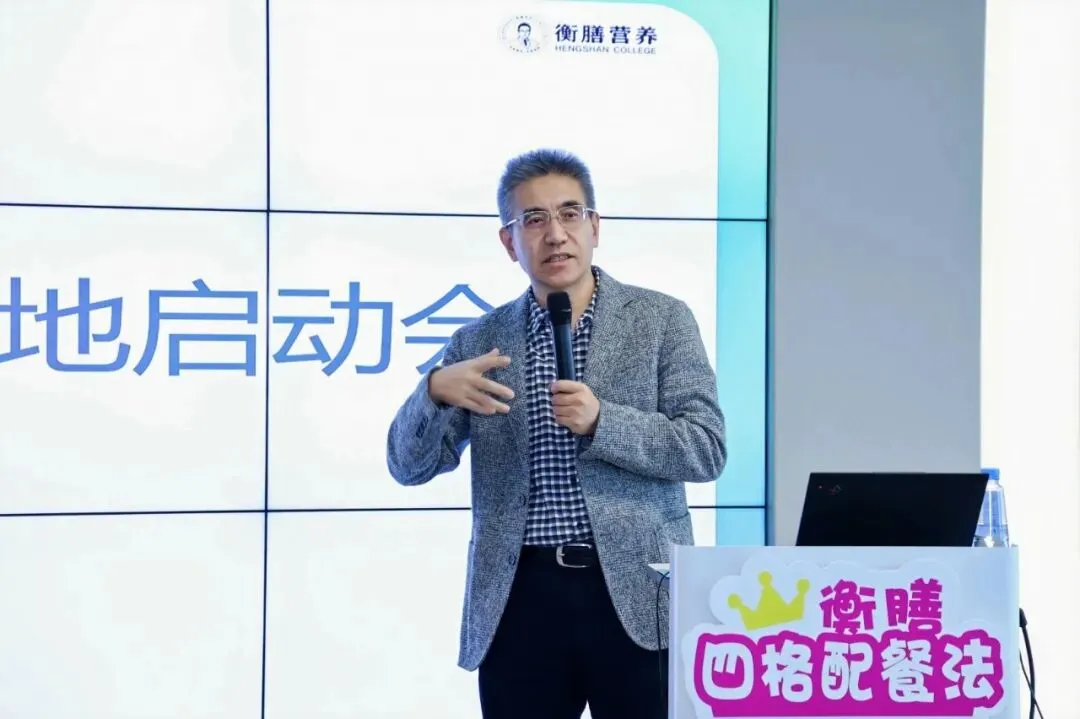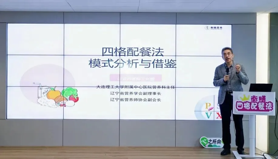 开场由营养医师王兴国主讲《四格配餐法模式分析与借鉴》,他回顾了近几年来四格配餐法落地生根、发芽结果的历程,在注册营养师姜丹老师的主导下,四格配餐法线上课程→各地巡回举办培训分享会→「金丹营养日课」→《健康适宜技术高级培训班》,并从中总结了理念先行、重视实践(从实践中来,到实践中去,用实践拓展实践)和“一事多用”等做好营养工作的经验。